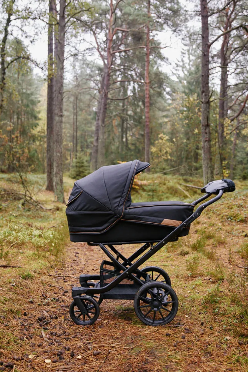 Barnevogns lufferne er lavet af imiteret læder, og fleece-for.