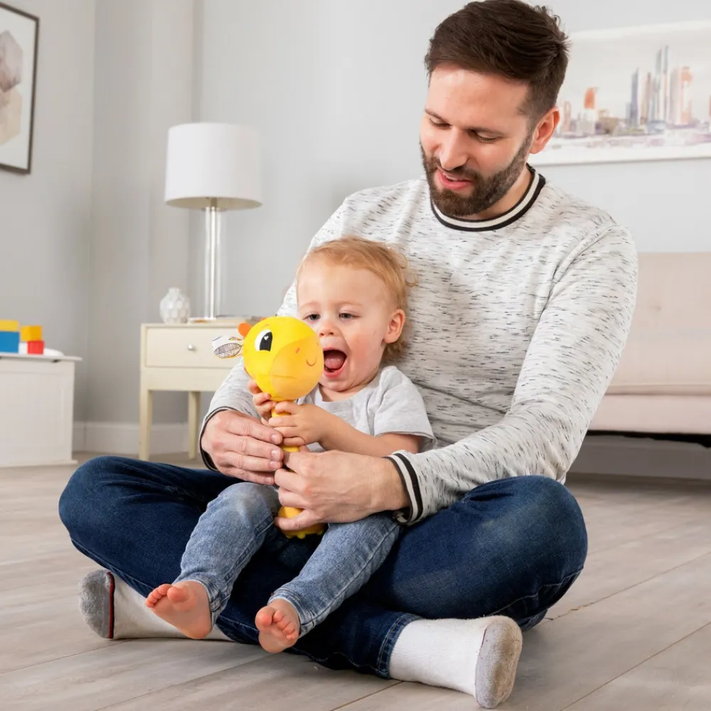 Giraffen laver sjove lyde når du slår med den bløde giraf. Du kan også slukke for lydene.