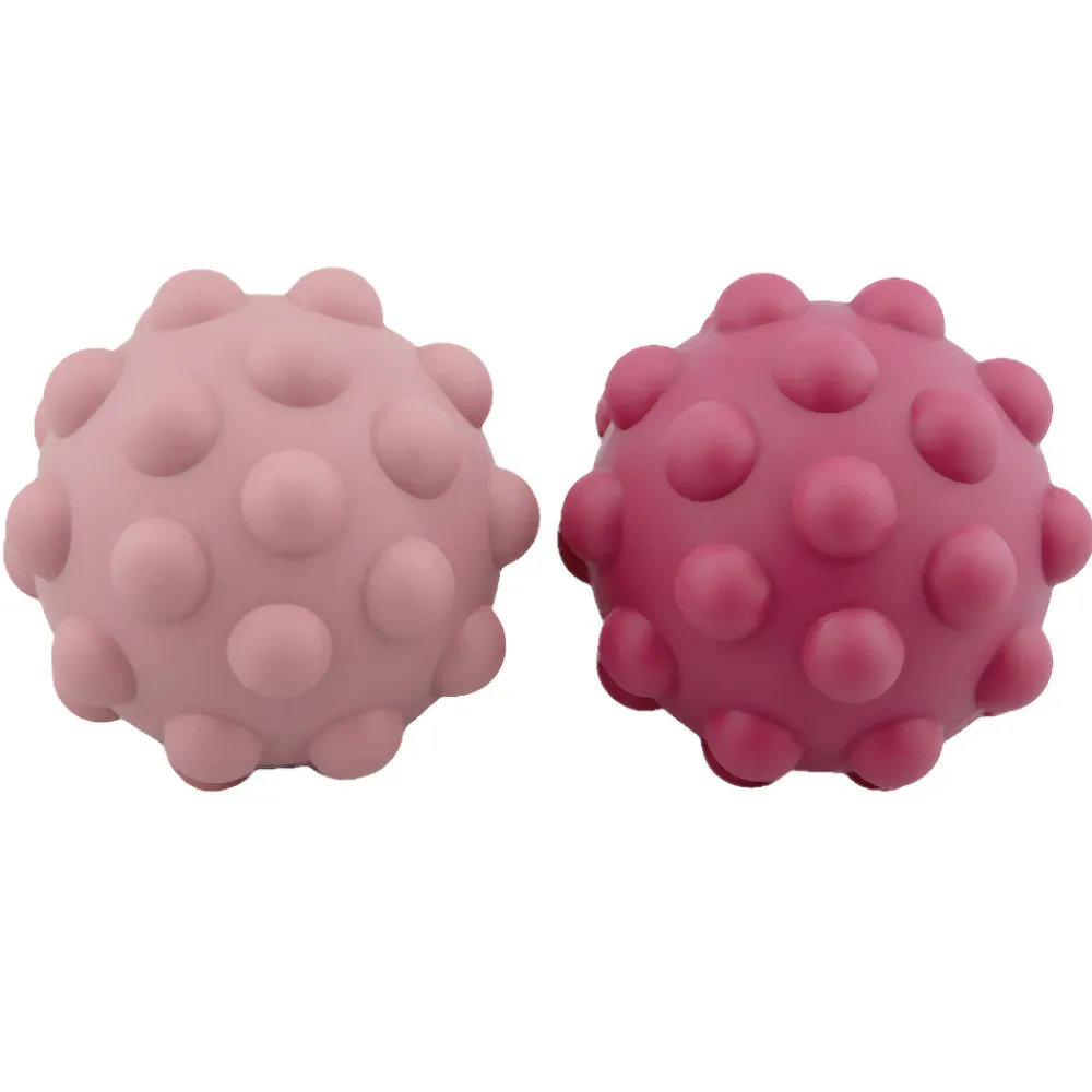 2 pak. Stimulerende små bolde med mange funktioner, produceret af 100% ren silikone. Den bløde silikone stimulerer finmotorikken, og gør det nemt at gribe fat om bolden. Med sjov pop fidget effekt, som gør det ekstra spændende at udforske boldene. Tryk let på knopperne, og se hvor mange der kan trykkes ind, inden de popper frem igen. Fantastisk stimulerende og udviklende for børn i alle aldre, samt for børn med særlige sansebehov. Boldene giver god træning i udviklingen af de motoriske færdigheder og stimulerer barnets forskellige udviklingstrin. Boldende tåler opvaskemaskine, med kan også vaskes i hånden i mildt sæbevand. Mål: Diameter 7 cm. Vægt: 55 g.