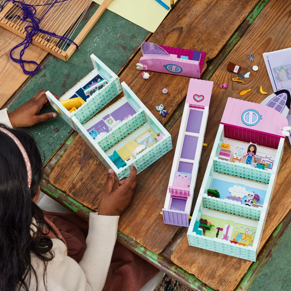 Dette sortiment af farverige LEGO® legesæt er baseret på DreamWorks Animation-serien Gabby´s Dollhouse. Børn fra 4 år kan lege sammen med Gabby og hendes kattevenner, bruge deres kreativitet og løse problemer sammen, når de udforsker alle dukkehusets katte-tastiske rum.