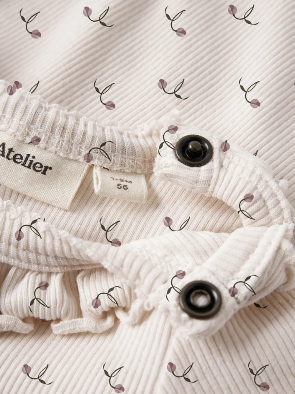 Sammensæt det perfekte outfit til dit barn med kvalitetsdagsmodetøj og skab et behageligt og trendy look.Jersey er et let og elastisk stof med en blød overflade og inderside, der giver en behagelig fornemmelse og bevægelsesfrihed. – Produkttype: Bodysuit – Halsudskæring: Rund halsudskæring – Ærmer: Lange ærmer (L/S) – Lukning: Trykknaplukning – Ekstra detaljer: Mærke, flæser, babylock-detaljer – Tryk: Tryk gentaget over hele produktets overflade – Advarsel: ADVARSEL! Holdes væk fra ild