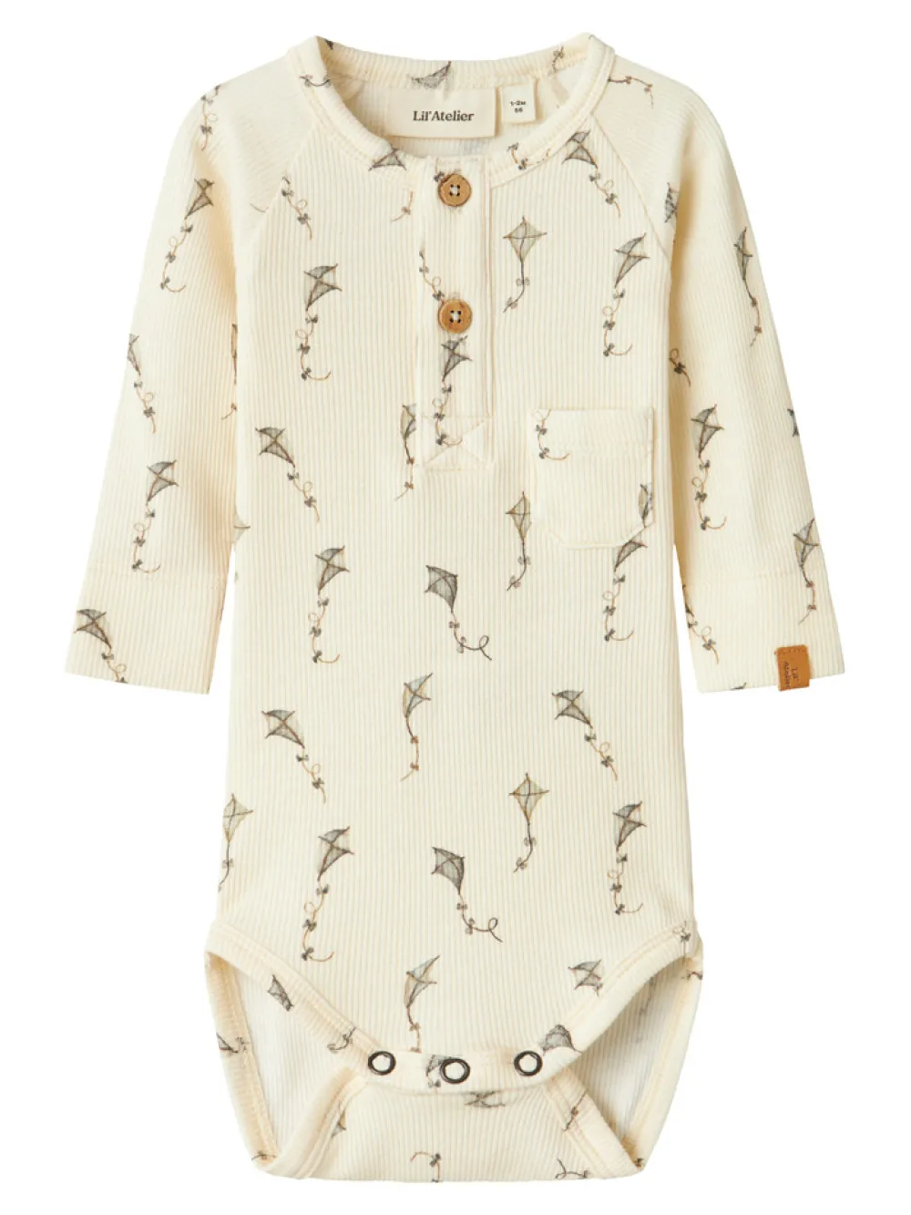 Gavo ls slim body fra Lil’ Atelier i farven TURTLEDOVE er et skønt valg til de mindste. Bodyen er fremstillet i blød og åndbar økologisk bomuld, som føles behagelig mod barnets hud og sikrer optimal komfort hele dagen. Den slim fit pasform giver en tæt og behagelig følelse, mens de fine træknapper og den lille brystlomme tilføjer et charmerende udtryk. Det søde drageprint gør bodyen ekstra hyggelig og velegnet til både hverdag og festlige lejligheder. Med trykknapper i bunden er det nemt og hurtigt at skifte ble, og bodyen holder sig flot vask efter vask.