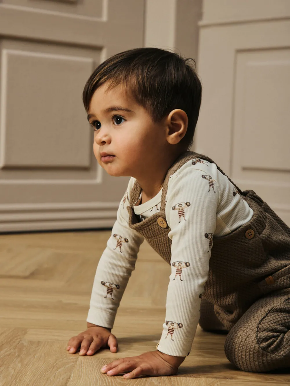 Serendipity Organics Baby Stribet Body – ALMOND/OW- Bodystocking Langærmet