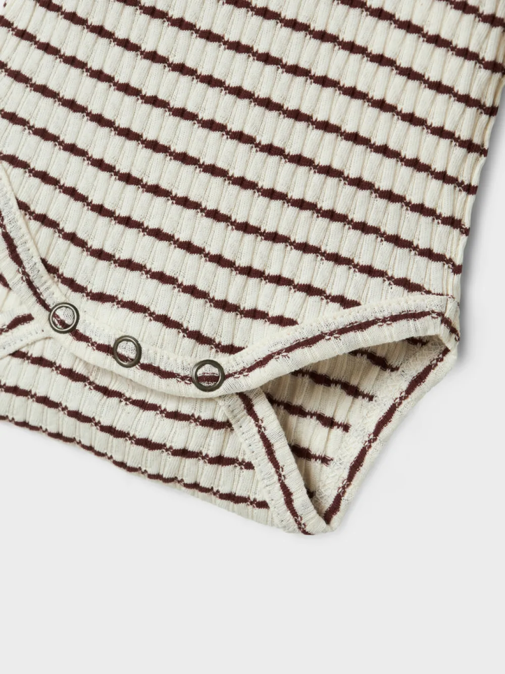 Sæt det perfekte outfit sammen til dit barn med kvalitetsstyles til hverdagen, og skab et behageligt og trendy look.Jersey er et let og elastisk stof med en blød overflade og inderside, der giver en behagelig fornemmelse og bevægelsesfrihed. – Produkttype: Bodysuit – Halsudskæring: Rund halsudskæring – Ærmer: Lange ærmer (L/S) – Lukning: Trykknaplukning – Ekstra detaljer: Flæser, mærke – Advarsel: ADVARSEL! Holdes væk fra ild