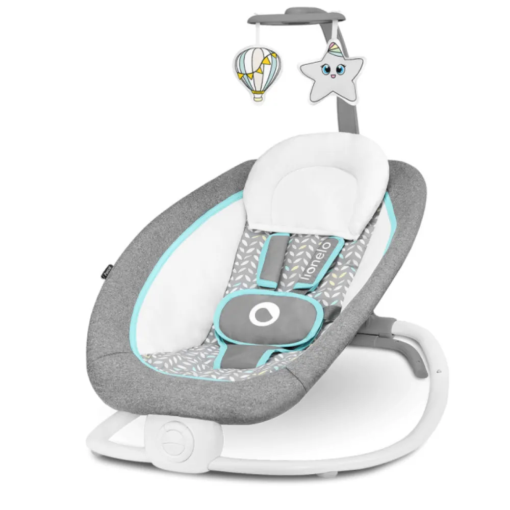 5-punktssele for at beskytte barnet mod at falde ud.Naturligt gyngesystem.Sættet indeholder også et aftageligt stativ med interaktivt legetøj.Komfort under alle forhold.Kompakt størrelse.udstyret med en aftagelig pude, der understøtter barnets hoved.Betrækket kan vaskes i vaskemaskinen ved 30 ° C.Godkendt til 9 kg. (0-6 måneder)Konstruktionen af Pascal-vippen tillader montering uden ekstra værktøj.Systemet til at folde produktet i en kompakt størrelse er perfekt til små rum og til rejser. Takket være energispare tilstanden kan Lionelo Pascal arbejde i op til 180 timer med et sæt af 2. AA-batterier.Pascal har gennemgået en række interne inspektioner og test på SGS uafhængige certificeringslaboratorium.Produktet opfylder kravene i den europæiske sikkerhedsstandard EN 12790.