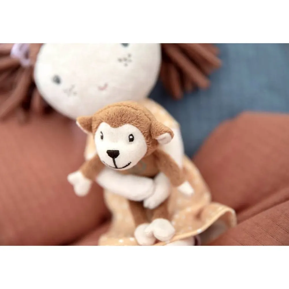 Hej! Mit navn er Sophia og jeg er din nye lille ven. Med Monkey i den ene hånd og dig i den anden, kan vi opnå alt. Vi står stærkt sammen! Sophia er 35 cm høj, og kan sidde op og glæder sig til at tage med dig og Monkey ud på oplevelser. 100% polyester, fyld: 100% polyester. Kan maskine vaskes.