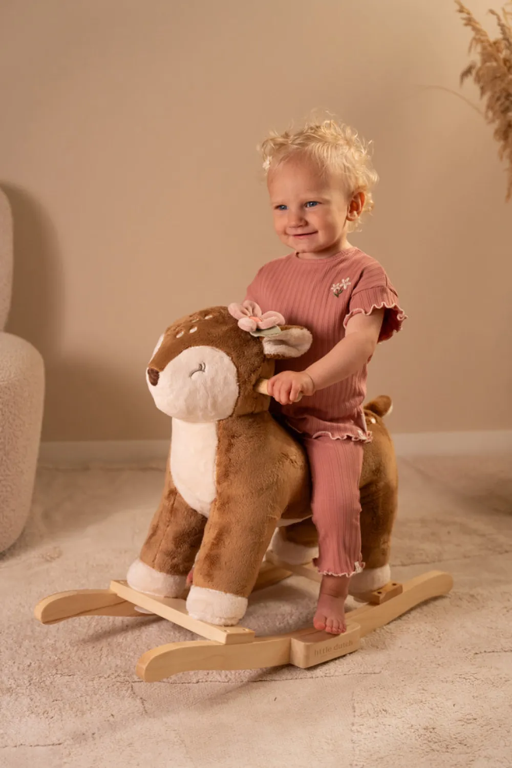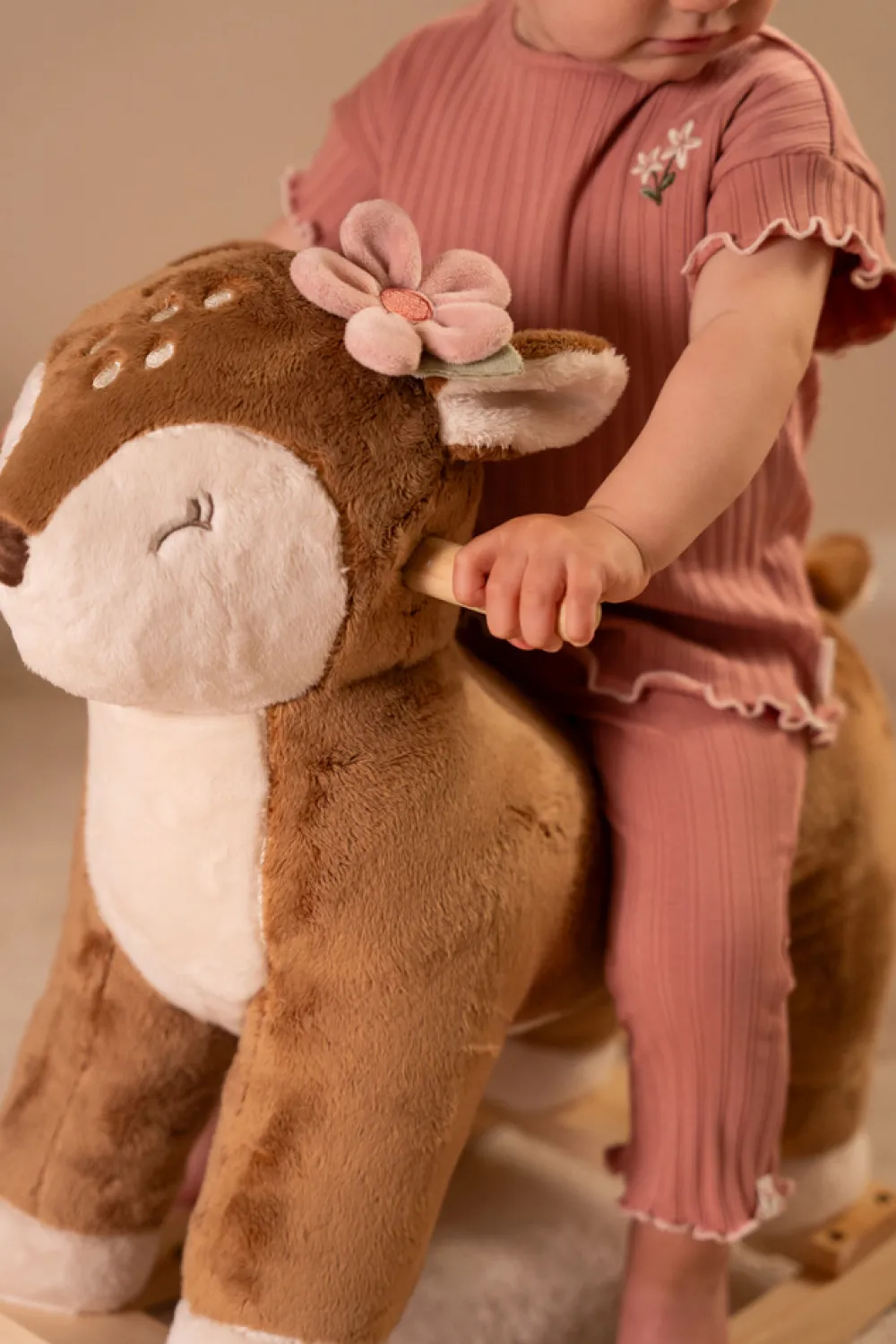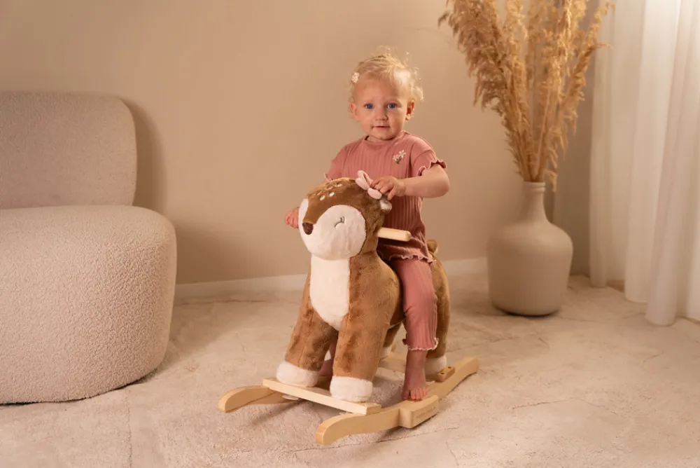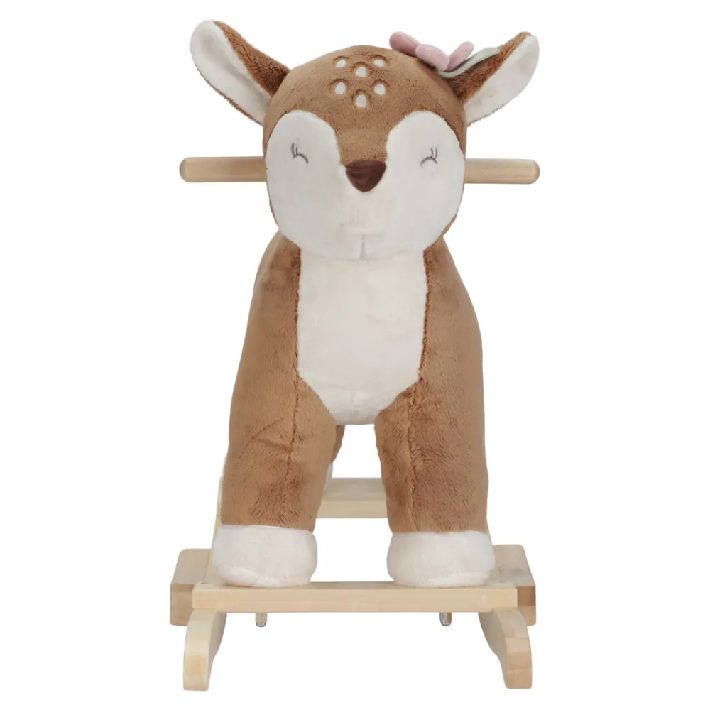 Hop op på denne søde gyngende hjort og vug dig af sted! Den robuste træramme sikrer sikker leg, mens den bløde pels gør den ekstra nuttet. Perfekt til børneværelset!