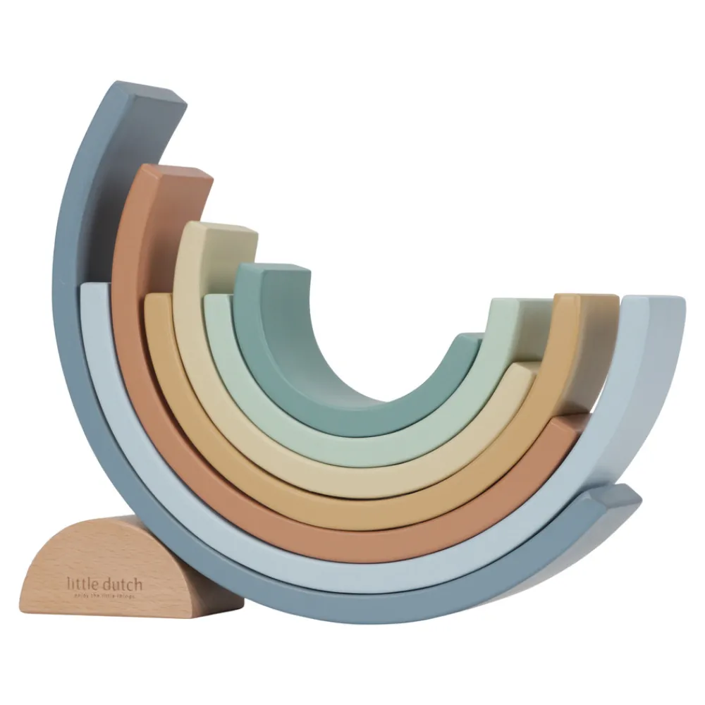 Little Dutch regnbuede formede stabeltårn er designet til at børn kan lege og lære på samme tid. De kan stable buerne eller bruge deres fantasi til at lave alle slags kreationer, som f.eks. en togtunnel, et hus til små dukker eller broer til små biler. Mulighederne er er uendelige!
