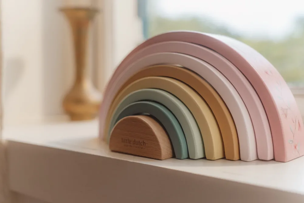 Little Dutch regnbuede formede stabeltårn er designet til at børn kan lege og lære på samme tid. De kan stable buerne eller bruge deres fantasi til at lave alle slags kreationer, som f.eks. en togtunnel, et hus til små dukker eller broer til små biler. Mulighederne er er uendelige!
