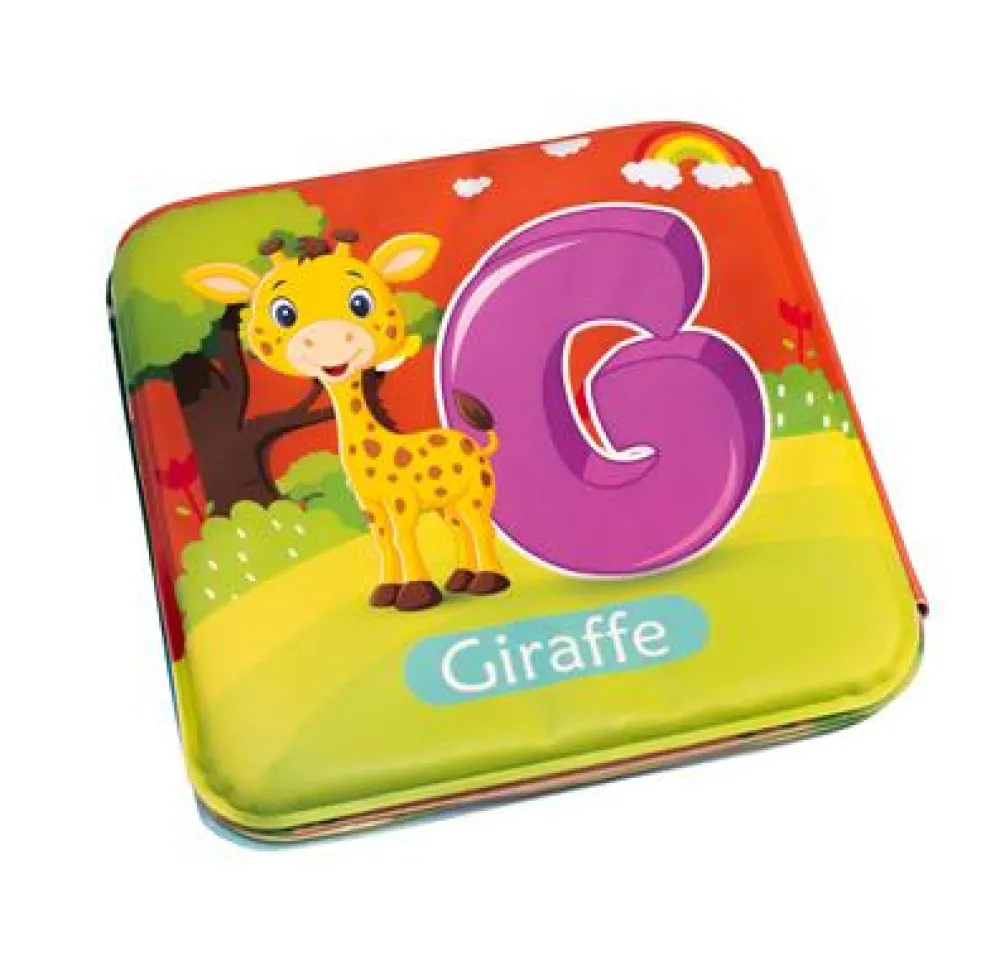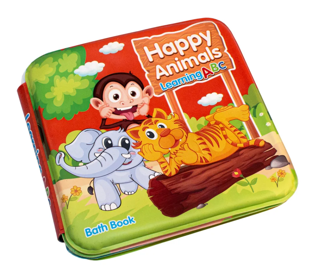 Sød badebog med sider af forskellige dyr.