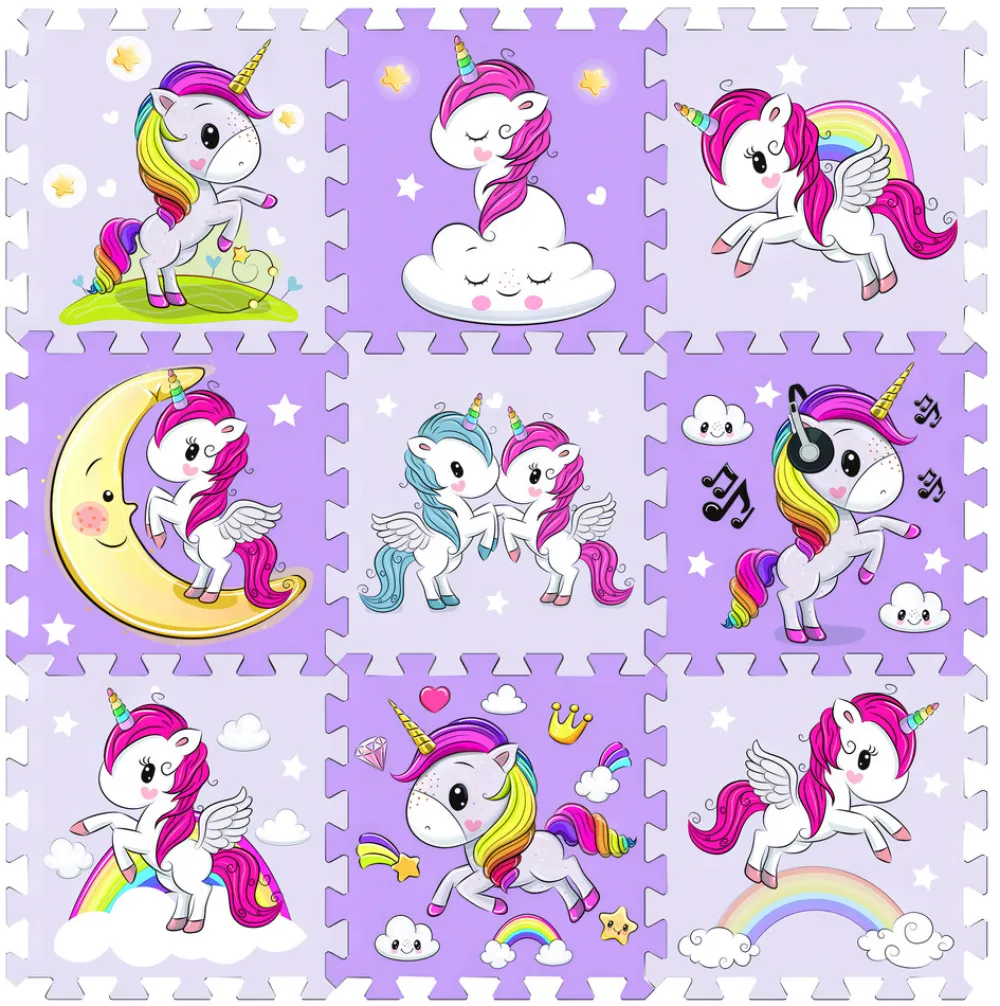 Børnene kan hoppe, lege og skabe deres egne eventyr på dette bløde og trygge gulv, mens de føler sig omgivet af den fortryllende verden af enhjørninger.