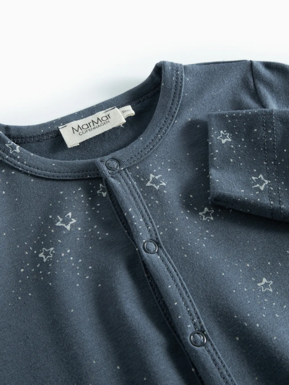 Ruka Heldragt fra MarMar Copenhagen er det perfekte valg til både hverdag og hygge. Dragten er designet med fokus på komfort og funktionalitet, så dit barn kan bevæge sig frit og ubesværet. Den bløde kvalitet gør heldragten behagelig at have på hele dagen, og de praktiske trykknapper gør det nemt at tage dragten af og på – ideelt til både små og større børn. Det stilrene og klassiske design passer til enhver garderobe og kan bruges både som nattøj eller som et lunt lag på kølige dage. MarMar Copenhagen er kendt for deres høje kvalitet og sans for detaljer, hvilket også afspejles i denne heldragt.