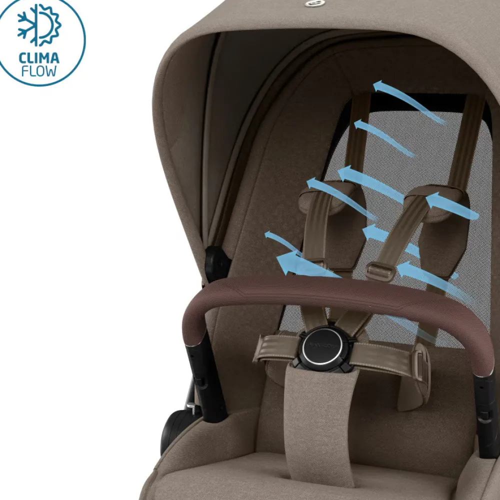 Klapvognssædet er polstret med et HD-indlæg i hukommelsesskum, samt et ryglæn i ClimaFlow-mesh for at maksimere ventilationen. Med klapvognsædet er det den perfekte bordhøjde til dit barn. Perfekt til når du mødes med venner til en kop kaffe.