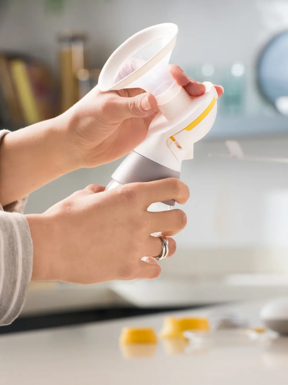 Swing Maxi™ har ni forprogrammerede indstillinger, du kan vælge imellem og styre med de fire brugervenlige knapper. Den elektriske dobbeltbrystpumpe Swing Maxi™ består af færre dele, hvilket gør samling og rengøring til en barneleg.