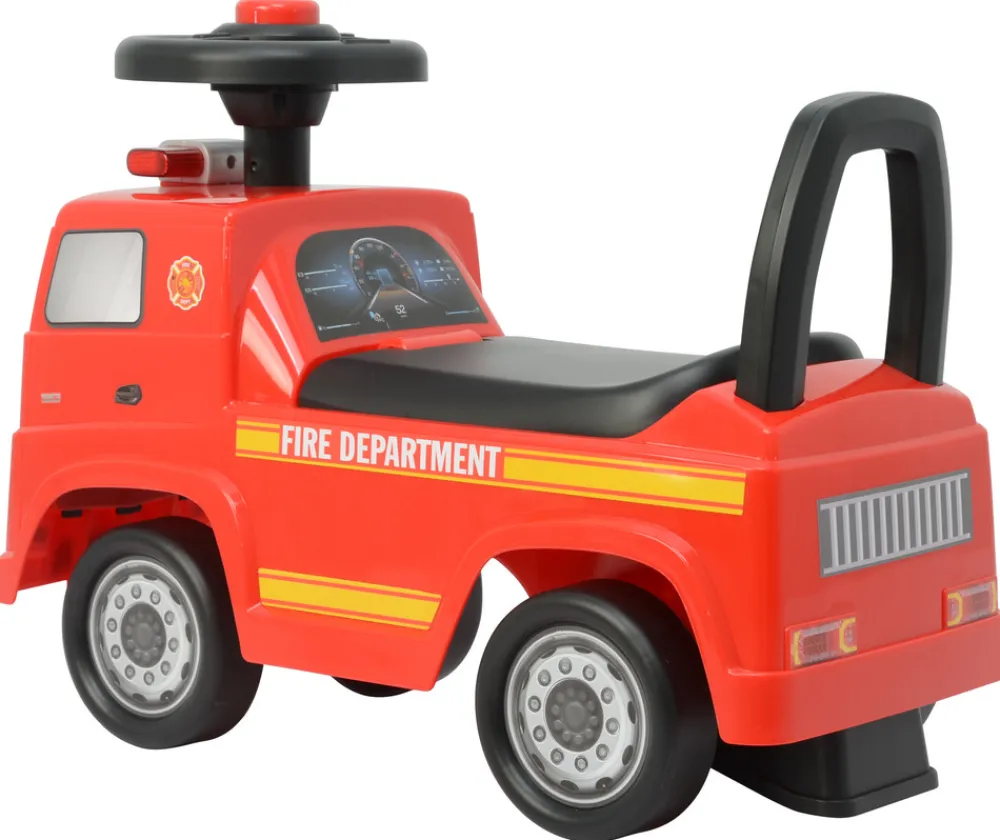 Mercedes brandbil med opbevaringsrum under sædet og pibelyd i rattet er den perfekte gåvogn til det lille barn.