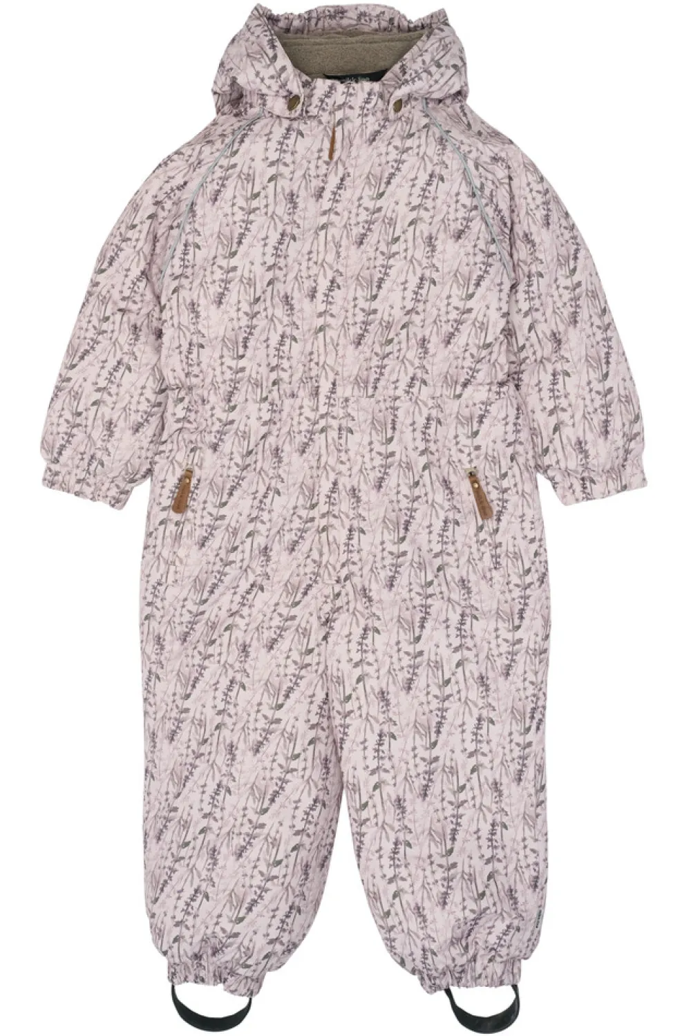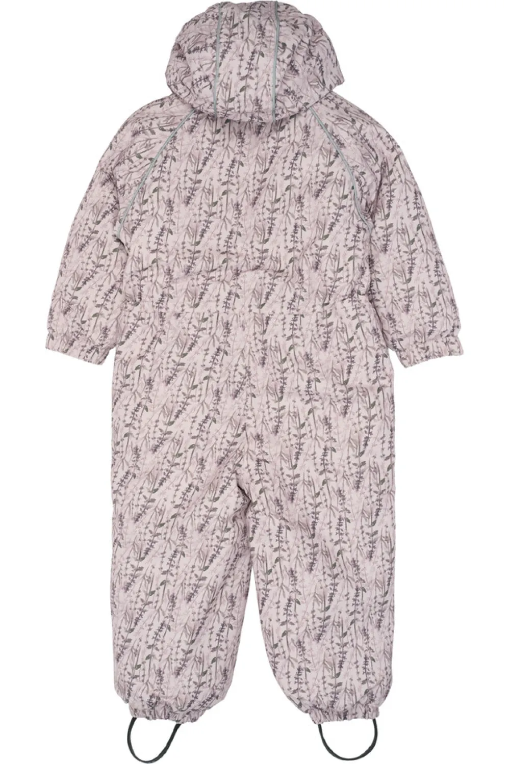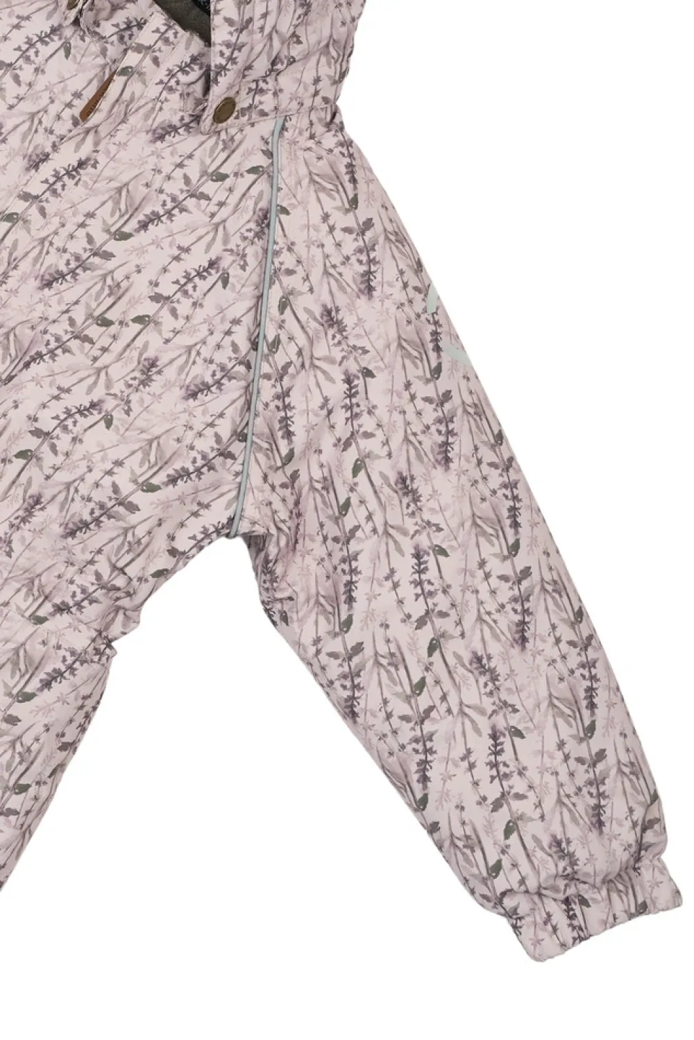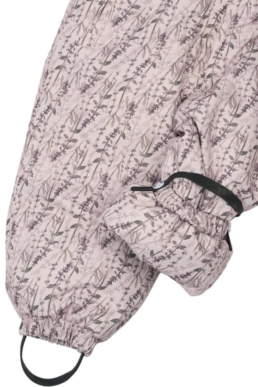 Mikk-line flyverdragt med et fint blomstret print. I denne lækre flyverdragt kan barnet lege og udforske naturen under den åbne himmel i alt slags vejr i løbet af de kolde og våde efterår- og vintermåneder. Flyverdragten er lavet af genanvendt polyester og polstret med polyesterfyld. Hætten og overkroppen har blødt fleece foer, hvorimod ærmerne og benene har en glat og gnidningsfri indvendig overflade. Vi har anvendt Solution Dye til farvning af det glatte for, da det bl.a. mindsker forbruget af vand i produktionen. Den er naturligvis også fluorfri med BIONIC-FINISH® ECO imprægnering.
