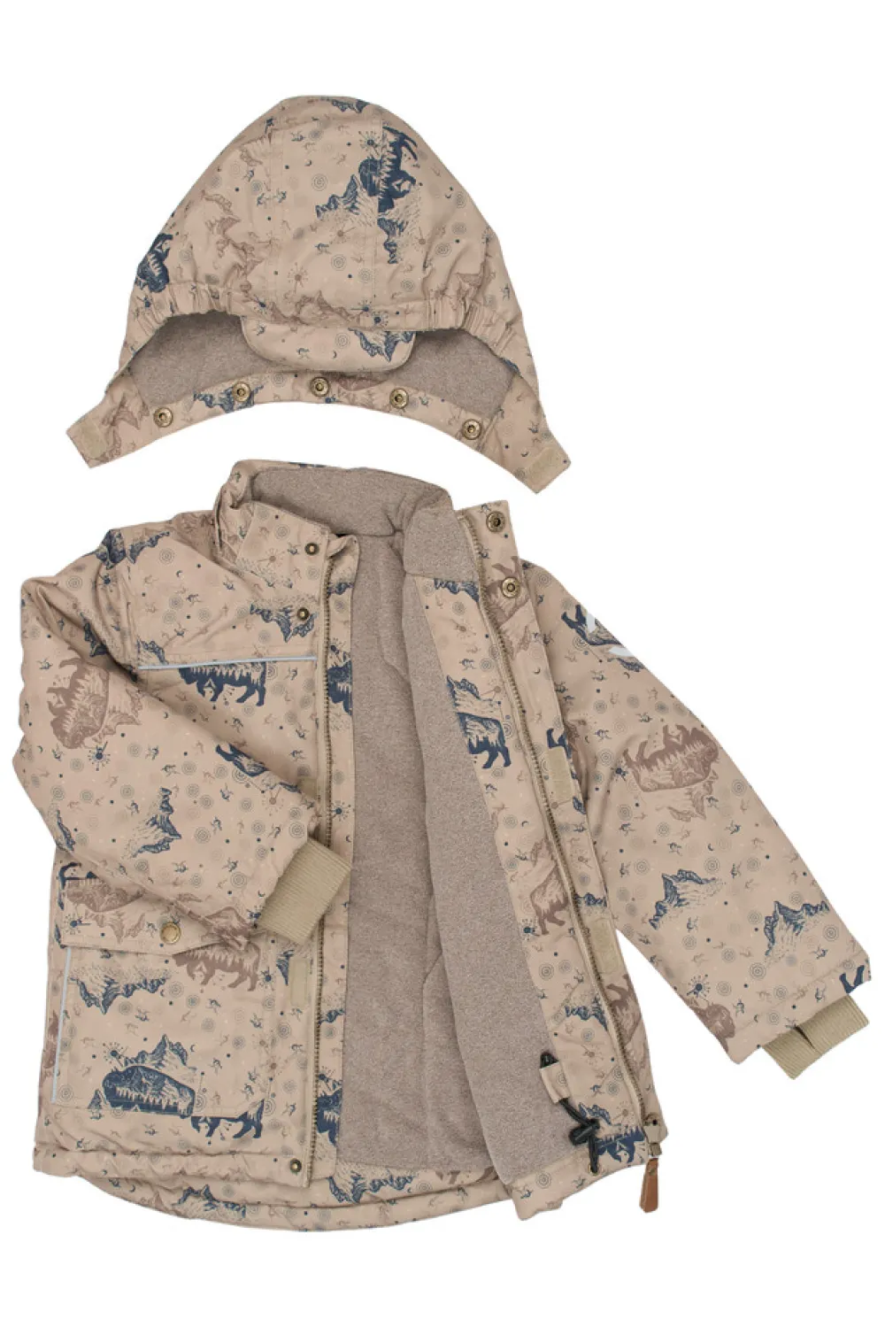 Mikk-Line jakken i farven Coriander er perfekt til aktive børn, der elsker at være ude i al slags vejr. Jakken har et slidstærkt ydermateriale, der beskytter mod vind og let regn, og den bløde foring holder barnet varmt på kølige dage. Den aftagelige hætte giver fleksibilitet og ekstra sikkerhed, mens ribkanter ved ærmerne sørger for, at vinden holdes ude. Med flere rummelige lommer er der plads til små skatte og handsker, og den justerbare talje sikrer en god og behagelig pasform. Jakken har et flot print, der gør den både praktisk og stilfuld til hverdagsbrug.