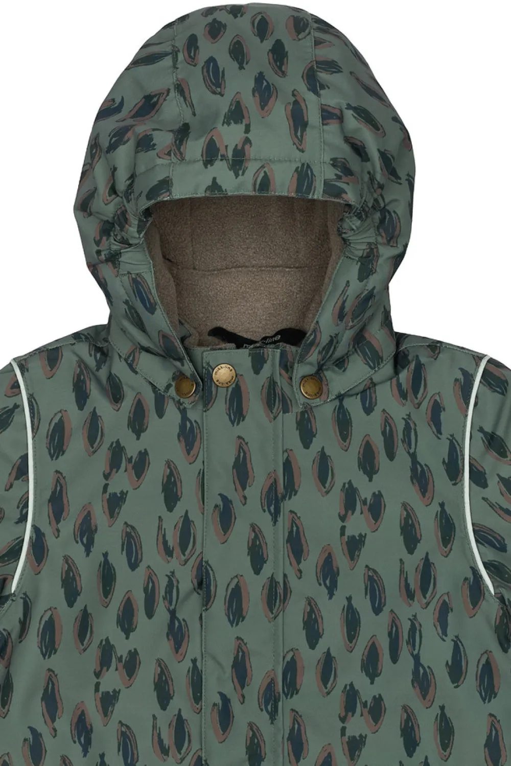 Mønstret mikk-line vinterjakke til børn, der elsker leg og eventyr i naturen og under åben himmel. Det er en moderne, letvægts vinterjakke, der giver varme og komfort til dit barn i det kolde efterårs- og vintervejr med vind, regn og sne.