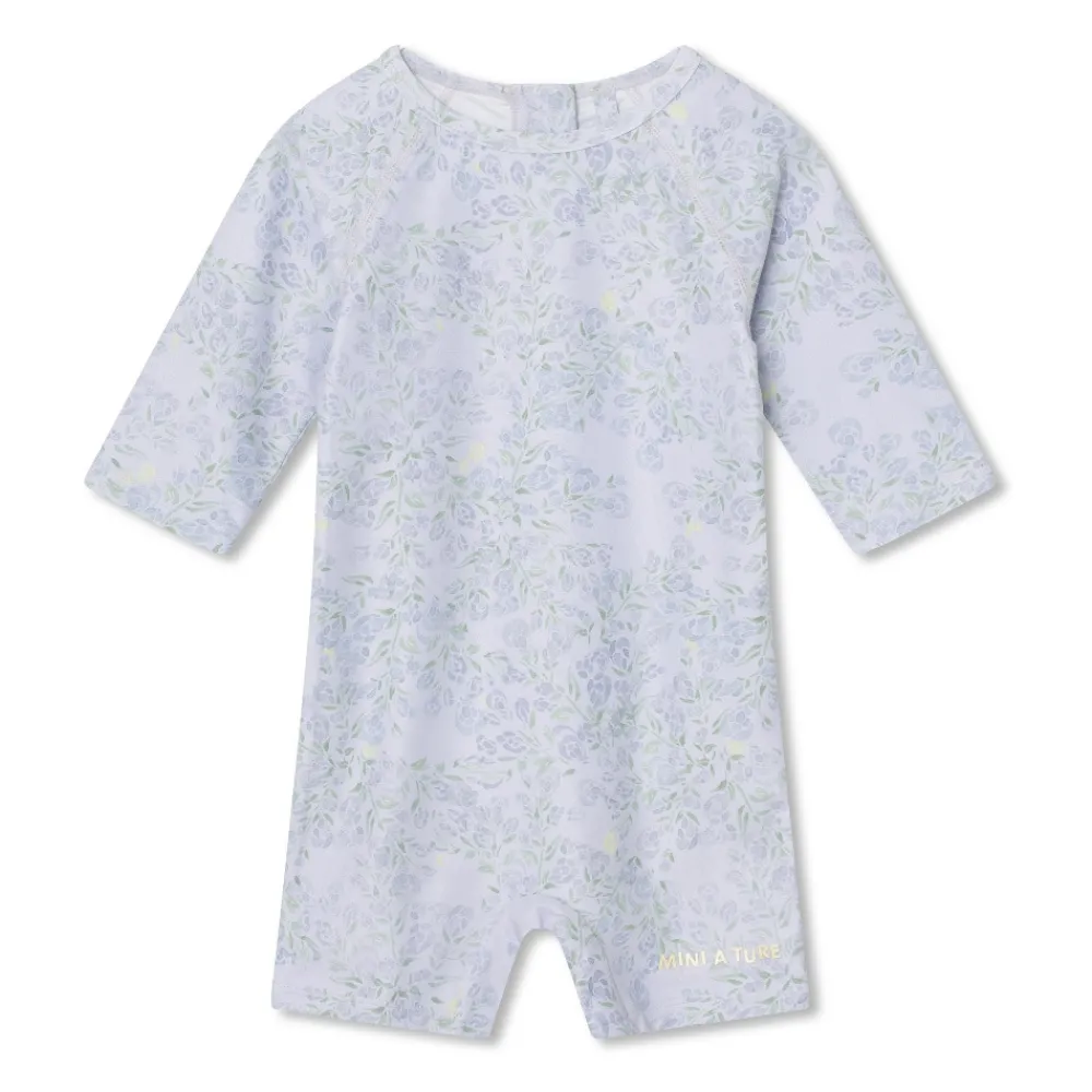 MINI A TURE heldragt til de små med håndtegnet print inspireret af naturen. Dragten har en lang lynlås bag på, hvilket gør den nem at tage af og på. Heldragten er fremstillet af genanvendt polyester.