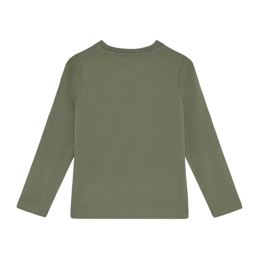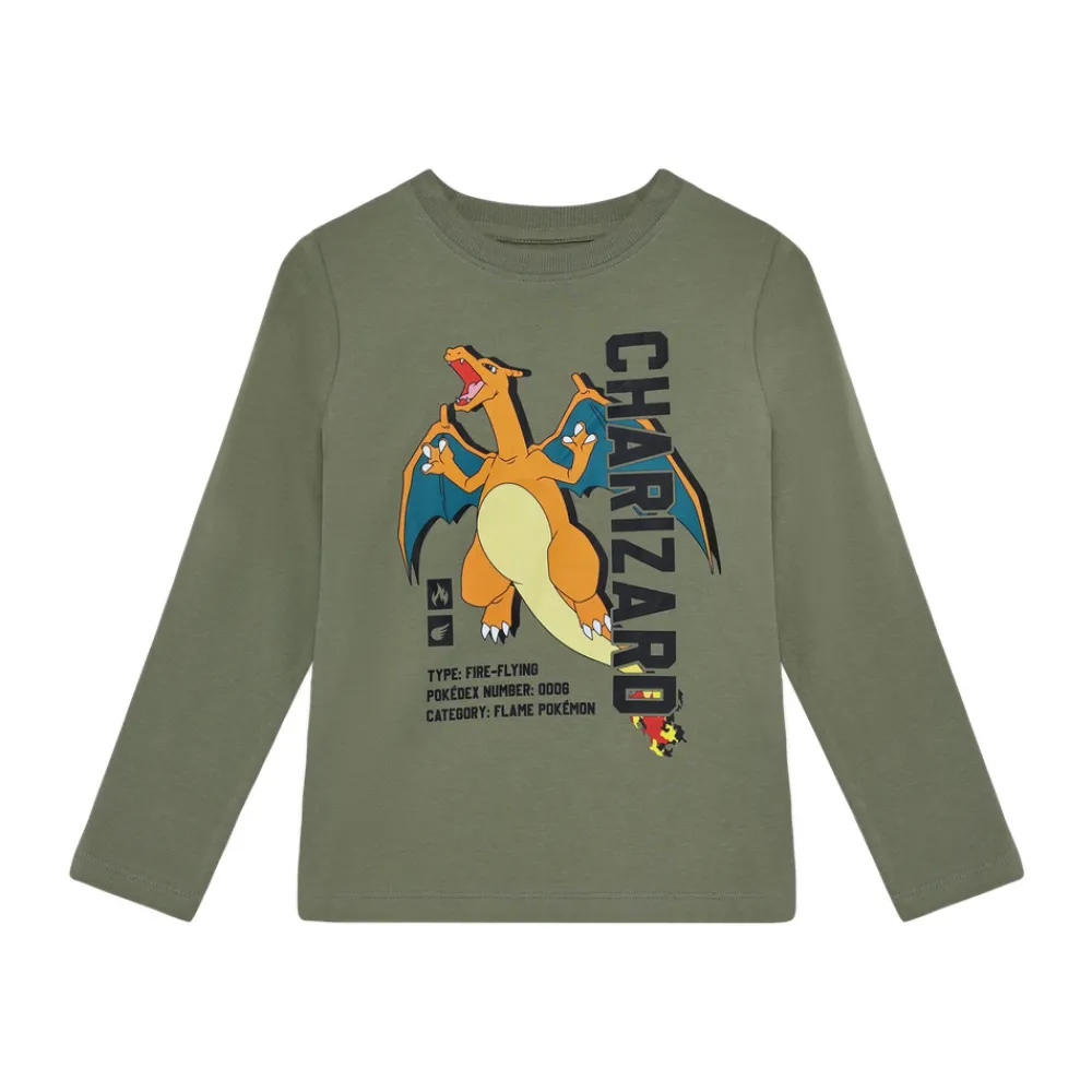 Sej bluse fra Minymo i en dæmpet olivengrøn farve, der giver et moderne og stilfuldt udtryk. Fronten prydes af et stort og karakteristisk print med en dragefigur fra Pokémon-universet, som tilføjer et eventyrligt og energisk touch. Blusen har lange ærmer og en klassisk rund halsudskæring, der sikrer god komfort og nem påklædning. Et oplagt valg til børn med hang til Pokémon og cool designs.
