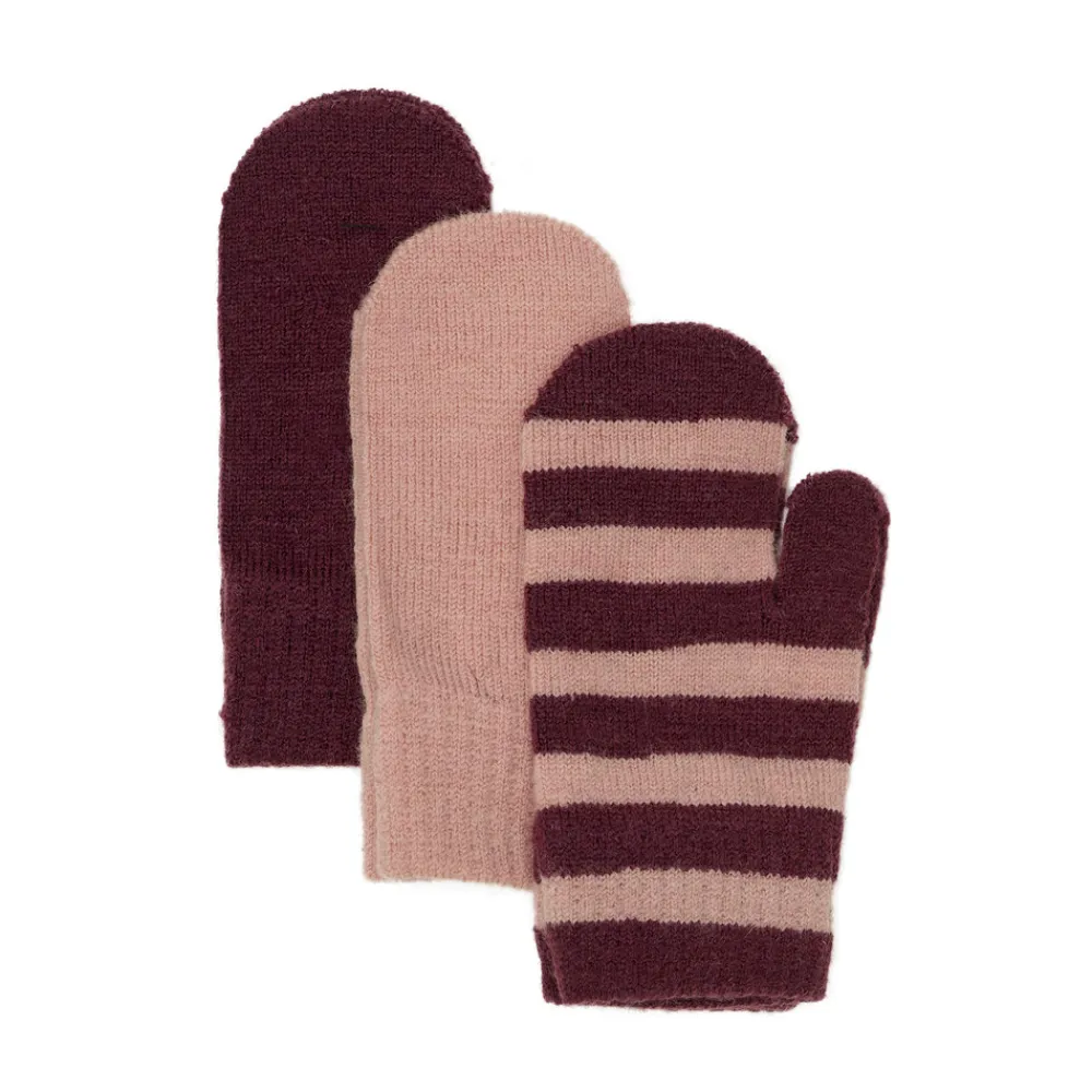 3-pak strikkede luffer i en blød og behagelig uldblanding, der sikrer varme og komfort til de kølige dage.