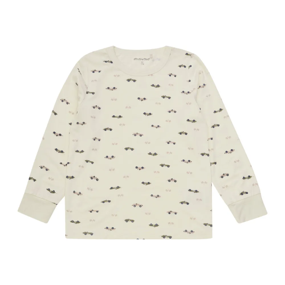 Smart pyjamas sæt til dreng bestående af langærmet bluse med ribkant nederst på ærmerne og lange bukser med elastik i talje og ribkant nederst på benene. Sættet er i det blødeste bambus viskose.