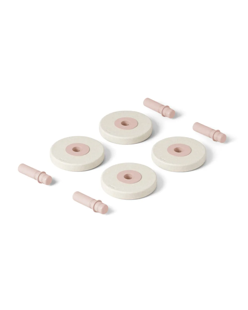 Et sæt Skumhjul indeholder 4 skumhjul og 4 tilhørende samlepinde.