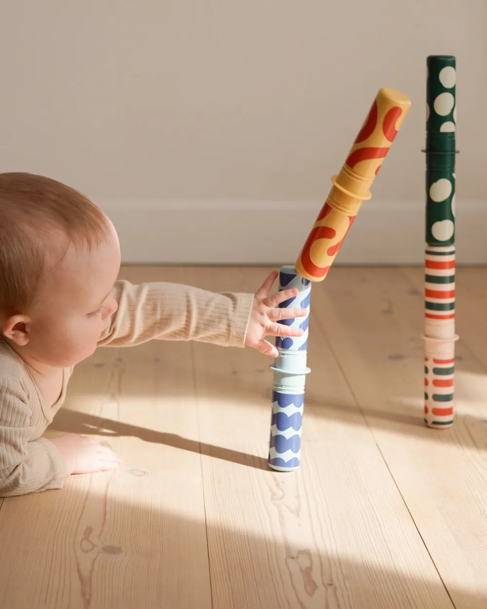 Tag på sanseeventyr med MODUs raslepinde! De sjove raslepinde introducerer en ny dimension til legen med sanseindlæring, finmotorik og tidlig leg for nyfødte og babyer. Hver raslepind har en unik lyd og et mønster, designet til at understøtte tidlig udvikling og gøre dine MODU-kreationer endnu sjovere. De organiske former er ikke kun fascinerende for de små, men står som en blød kontrast til klodsernes geometriske design, og gør hver raslepind til et lille kunstværk, som tænder nysgerrigheden og inviterer til leg for hele familien.
