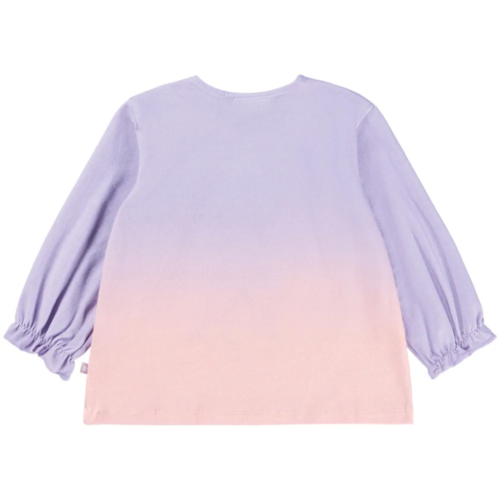 Bluse i økologisk bomuldsjersey. Blusen har en løs pasform, ærmer med elastik ved håndleddene og knaplukning ved skulderen.