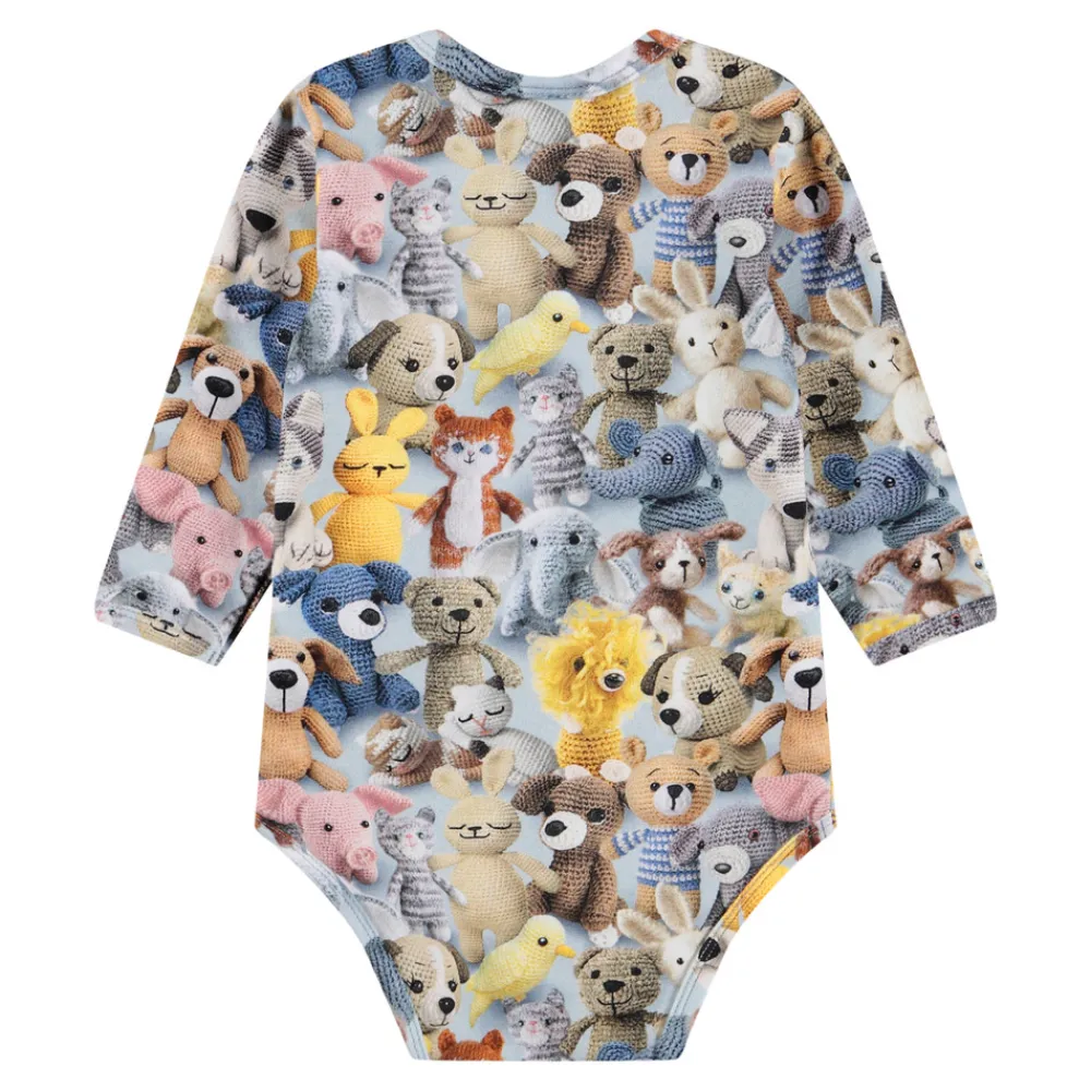 Blød bodystocking i økologisk bomuld med fine kantbånd. Udstyret med praktiske knaplukninger på skuldrene og mellem benene for nem af- og påklædning.