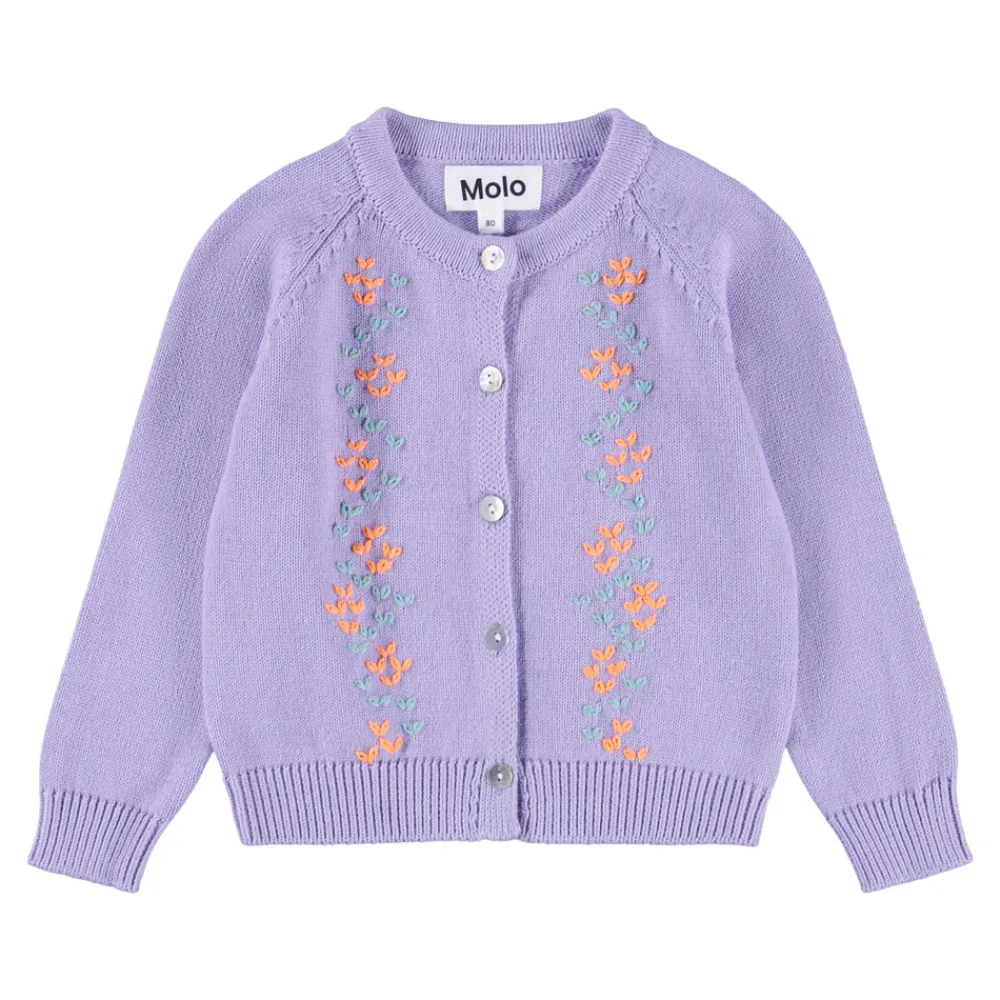 Strikcardigan i blød bomuld med fine ribkanter ved hals, ærmer og hofte. Lukkes med små perlemorsknapper foran for et klassisk og elegant udtryk.