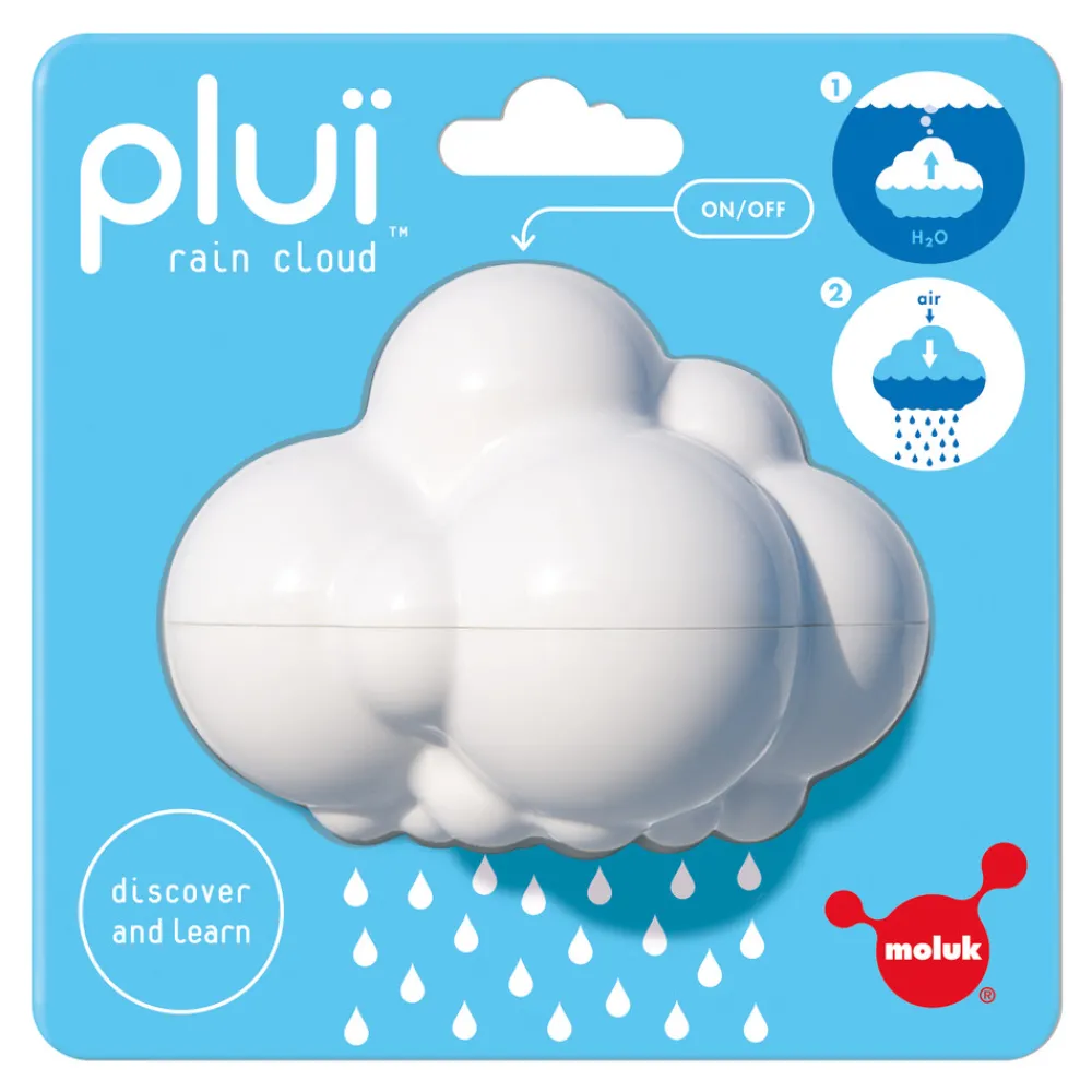 Lille sky hvor barnet let kan starte og stoppe regnen. Skyen fyldes med vand ved at holde det nede i badekarret.