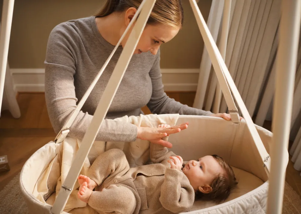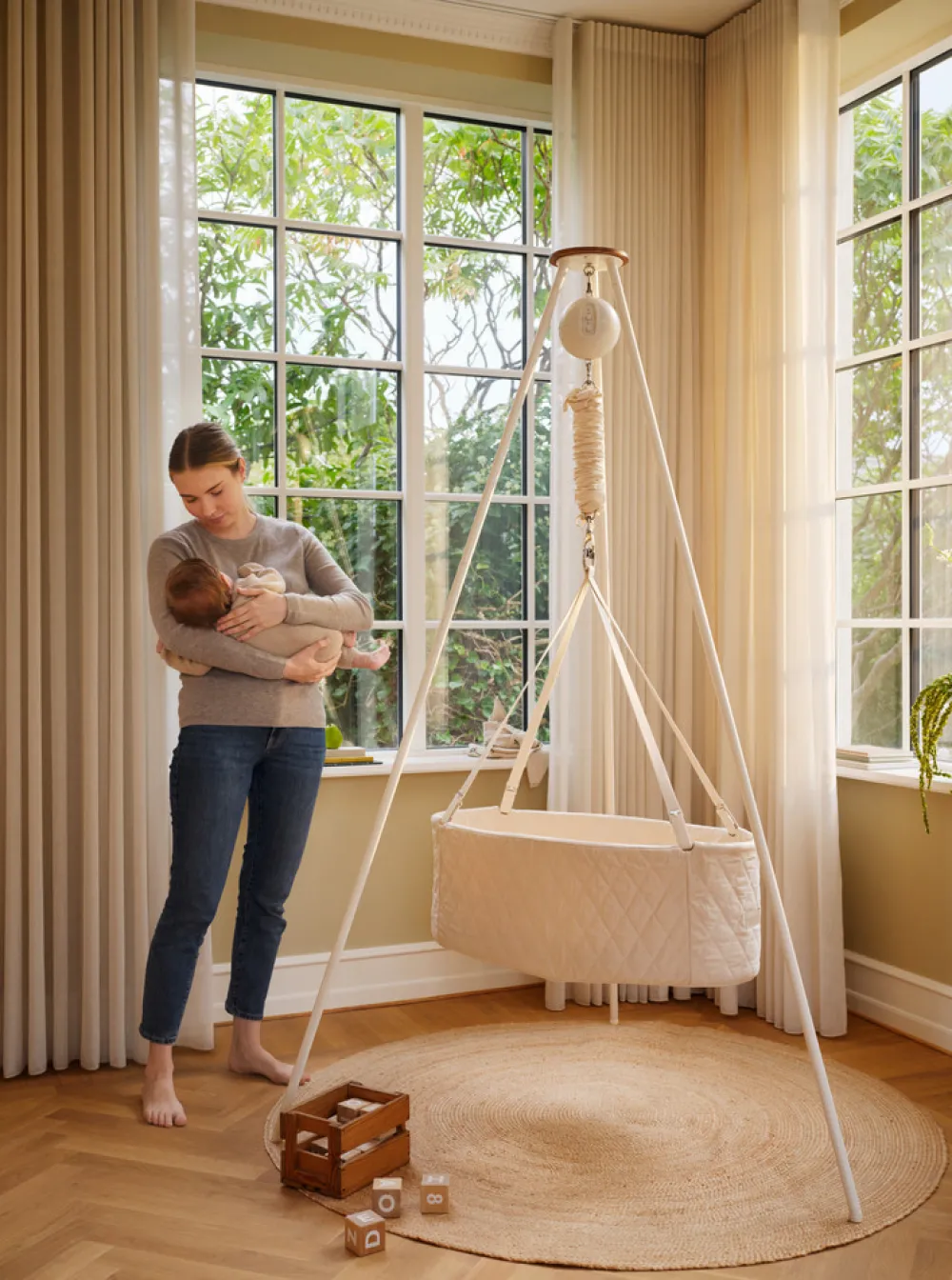 Den ovale vugge er skabt til at give din baby et trygt og komfortabelt sovemiljø. Med dens ovale form, inspireret af traditionelle vugger, skaber den et beskyttet og hyggeligt, men åbent rum, som hjælper din baby med at føle sig sikker og tryg. Vuggens blide gyngebevægelse efterligner de beroligende bevægelser fra livmoderen og virker afslappende, så din baby kan sove mere og bedre. Med en fast, flad bund giver vuggen både komfort og støtte, så din baby kan nyde fredfyldte nætter og rolige lure. Den ovale vugge forener tidløst design med moderne funktionalitet for at give en rolig søvnoplevelse, nat efter nat.