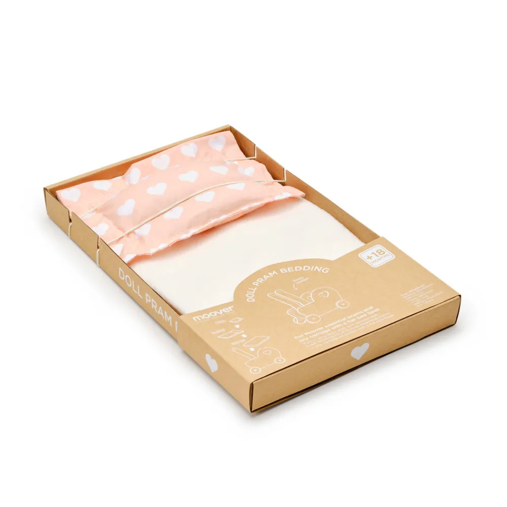 Dette luksuriøse sengetøj til Luksus Dukkevogn fra Moover Toys indeholder en dukkemadras, lagner, pude og tæppe.