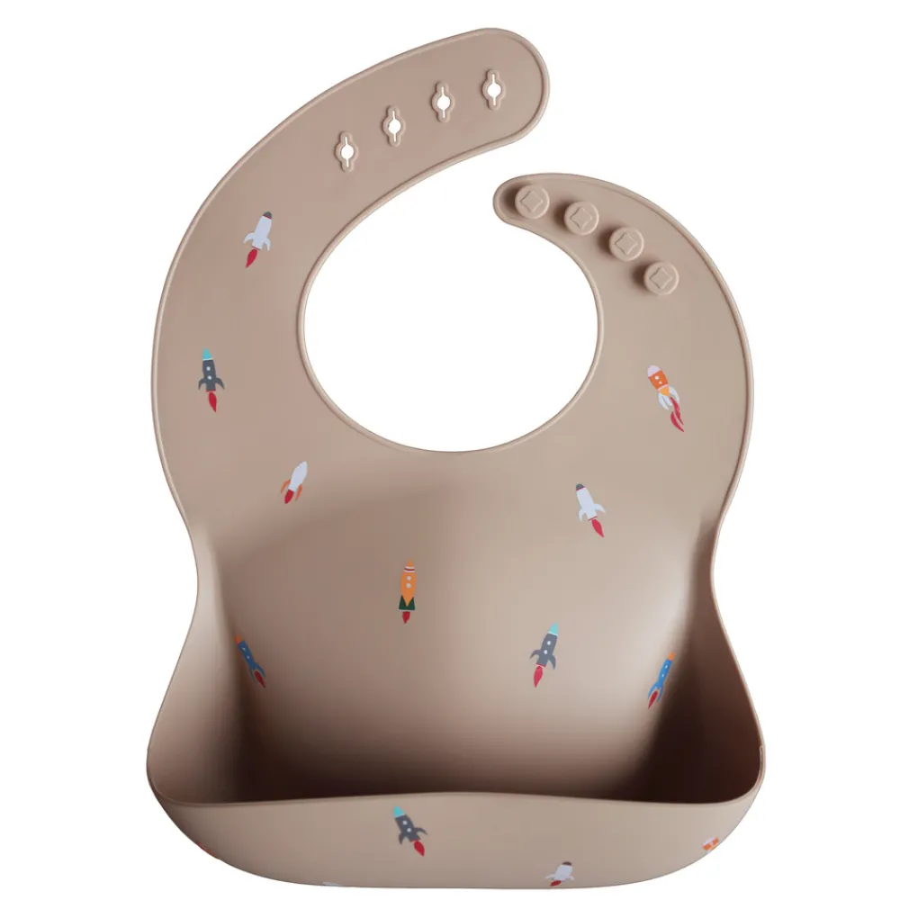 Hagesmækken er fremstillet af fødevarekvalificeret silikone og er fri for bisphenoler og phthalater. Mushie-hagesmækken har afrundede nakkebeslag, der giver en behagelig og blød pasform. Den har en dyb frontlomme, som er perfekt til at fange spildt mad, så den holder tøj og det omkringliggende område rent. Mushie hagesmækken er let at gøre ren, da den afviser pletter og er vandtæt. Derved undgår du, at den skal hænges til tørre eller bliver gennemblødt ved uheld.