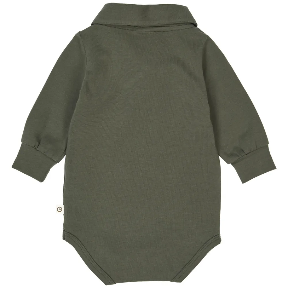 Denne søde body kombinerer komfort med et klassisk skjorte-look og er ideel til festlige begivenheder, hvor de mindste gerne må være lidt ekstra fine. Bodyen har en flot krave og dekorative knapper foran, lavet af naturlig corozo-nød, som giver et eksklusivt touch.