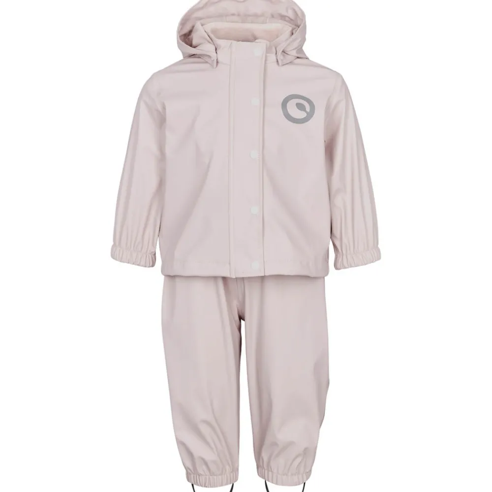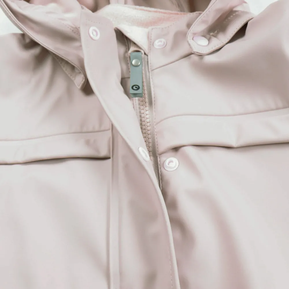 Dejlig blødt PU 2-delt regnsæt med seler til de mindste i flotte farver med tone i tone indfarvet foer. Sættet leveres i en praktisk gymnastiktaske med stropper, i samme kvalitet som regntøjet. Jakken: Jakken er udstyret med refleks for- og bag, så dit barn ses i mørke. Hætten er fastgjort med trykknapper, i åbninger er der en elastik og praktisk regn-skygge, så vandet afledes fra ansigtet. Der er dejlig blødt fleece foer i kraven og i hagebeskytteren. Indvendigt er der strop i nakken til ophæng samt label til navn. Jakken lukkes med lynlås lukning med hagebeskytter og vindstolpe med trykknapper. Ærmerne er med en blød indvendig elastik i åbningen. Selebukserne: Selebukserne er med justerbare elastiske seler og plastikspænder der lukkes med et klik. Bukserne kan justeres i bredden med trykknapper i begge sider. Buksebenet er afsluttet med en blød indvendig elastik og med justerbare og aftagelige fodstropper der kan sættes under støvlen, så bukserne ikke kravler op. Der er reflekser på bagsiden af begge ben. Indvendigt er der strop til ophæng samt label til navn. Müsli regntøj har følgende gode egenskaber: – Vandtæt med 8.000 mm vandsøjletryk. -Vindtæt -Fremstillet af genanvendt polyester certificeret med GRS -Fri for fluor og fremstillet uden skadelige kemikalier -Tapede/svejsede sømme -Reflekser Fremstillet af: Hovedmateriale: 100% Genanvendt polyester Coating: 100% polyuretan Indvendig fleece: 100 % polyester Vaskeanvisning: Vaskes i maskinen på 30 grader skåneprogram. Må IKKE tørretumblers Vi anbefaler at der IKKE bruges skyllemiddel ved vask Hænge-tørres, gerne med vrangen ud for hurtig tørringsproces. 66%, Polyurethan 34%