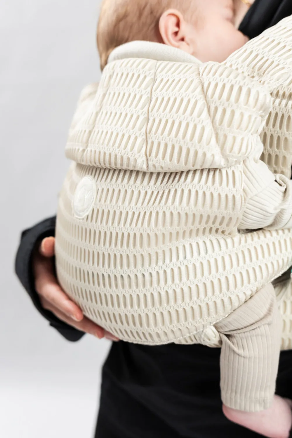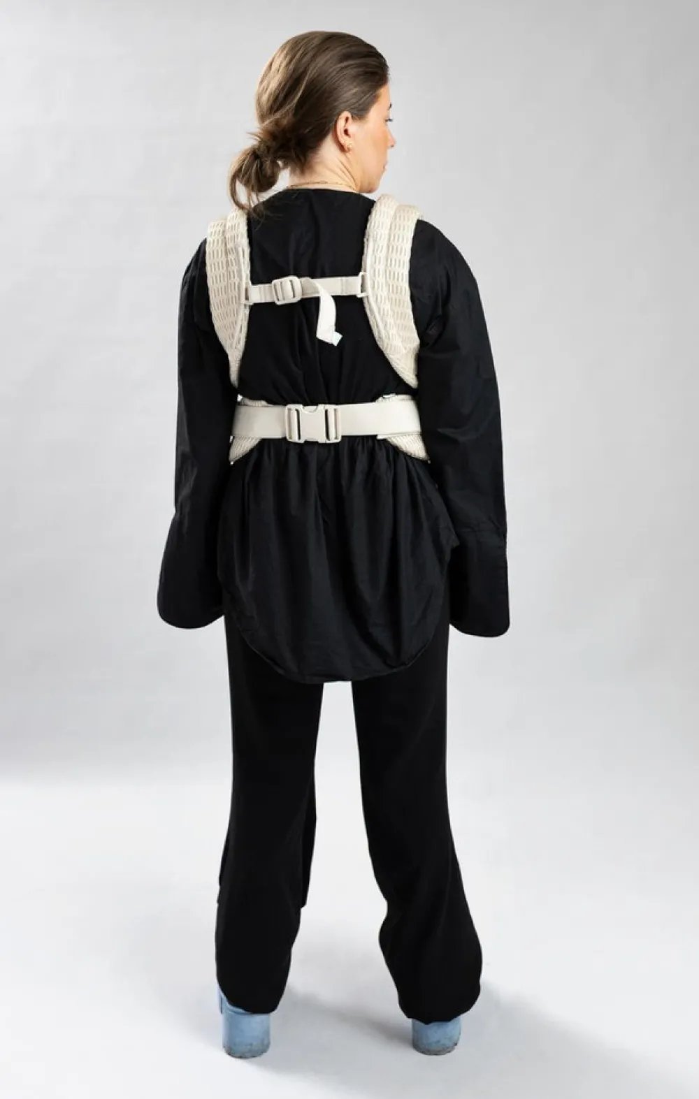 Forældrefrihed på et helt nyt niveau. Med minimale indstillinger og alligevel maksimal komfort har det aldrig været nemmere at få din baby i den perfekte position hver gang. Uanset om barnet vender mod dig, foran eller på din ryg, kan du ubesværet skifte positioner og bærere uden komplicerede indstillingsændringer. De magnetiske spænder og minimale indstillinger betyder, at du kan tage bæreselen på med kun én hånd. Justeringsanordning på frontpanelet. Unik for Rise Bæreselen, den har et innovativt justerbart frontpanel. De enkle og smidige sliders giver dig mulighed for at ændre bredden på det nederste frontpanel, selv når du kun har én hånd fri. Dette giver dig mulighed for at justere barnets siddeposition, hvilket gør fremadvendt lettere og sikrer, at alle har maksimal komfort. Tre bærepositioner, ingen komplicerede indstillinger. Najell Rise Bæresele er en ergonomisk bæresele, der kan bruges fra dag ét. For at bruge som en nyfødt bæresele, skal barnet bæres med ansigtet mod den voksne. Fra omkring 5 måneder, eller når de har styrket nakke- og overkropstabilitet, kan du begynde at bære fremadvendt. For at bære fremadvendt skal du justere de nemme sliders på frontpanelet i overensstemmelse hermed for optimal placering. Skub derefter barnet lidt ned for at give lidt mere plads til din baby. Fra 5 måneder kan du også bære barnet på ryggen. Najell Rise bæreselen er lavet med komfort i tankerne.