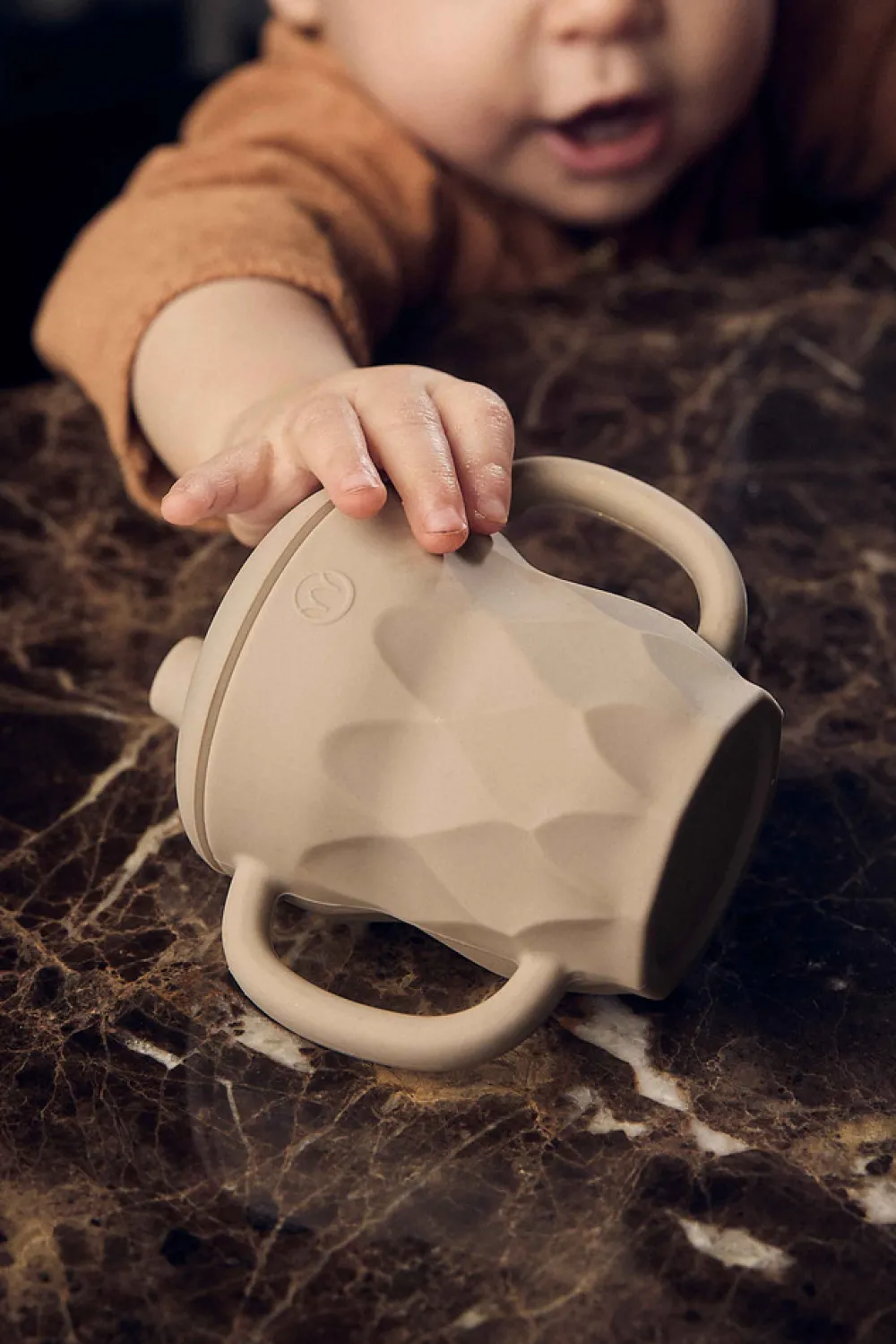 Denne tudekop gør det nemt for dit barn at få energi og starte dagen. Den er ideel til overgangen fra flaske til kop og er lavet af 100 % BPA-fri silikone. Tudekoppen kan tåle både opvaskemaskine og mikroovn, hvilket gør den praktisk og let at rengøre, selv under travle måltider. Koppen har et mønster, der sikrer et godt greb for små hænder, og et robust design med et aftageligt låg, der er både stødsikkert og spildsikkert. Perfekt til brug i køkkenet og på farten.