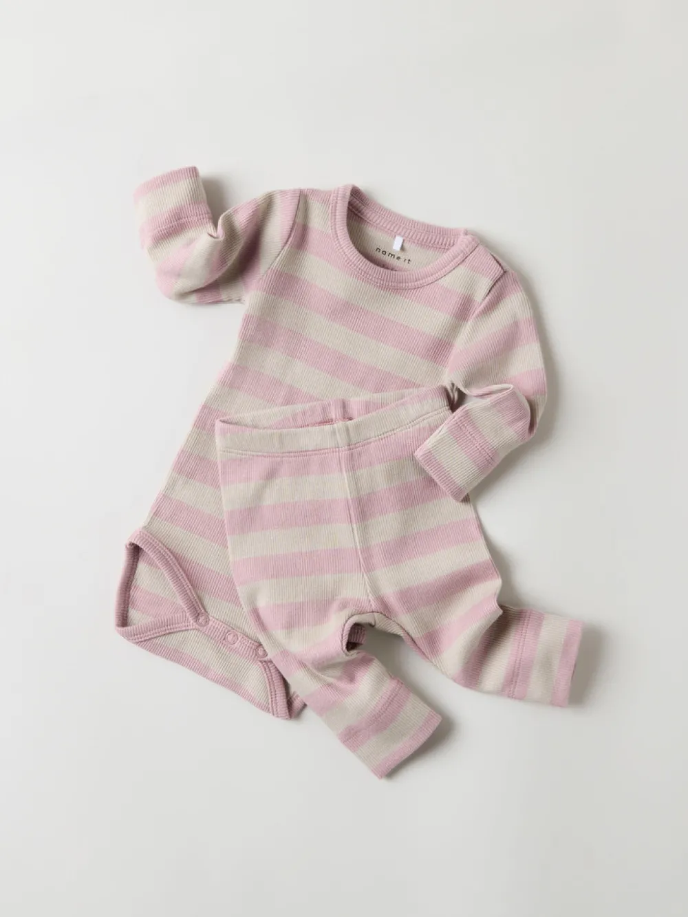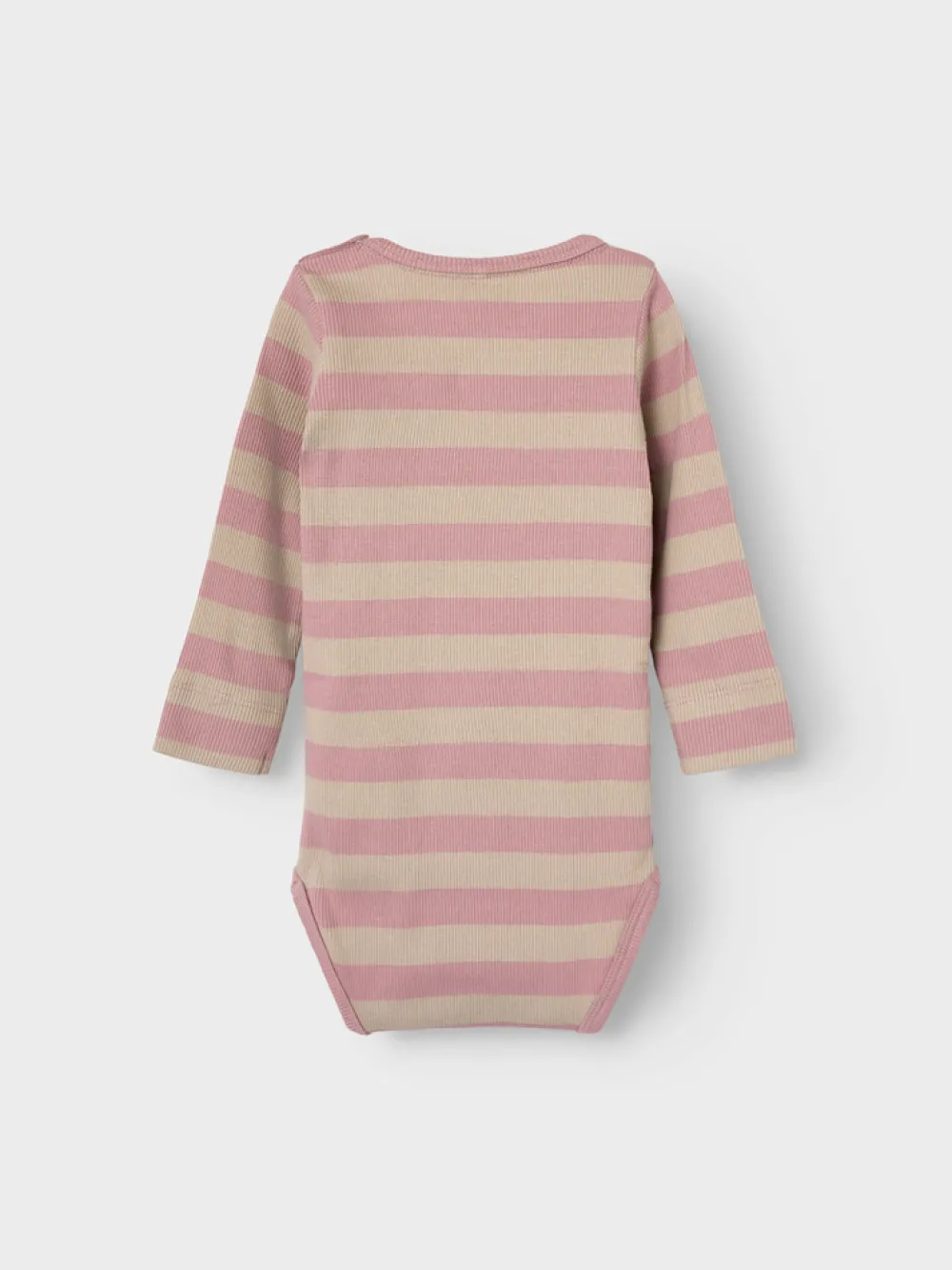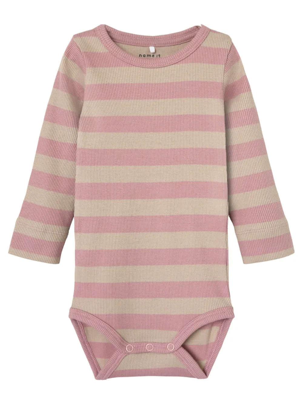 Serendipity Organics Baby Stribet Body – ALMOND/OW- Bodystocking Langærmet