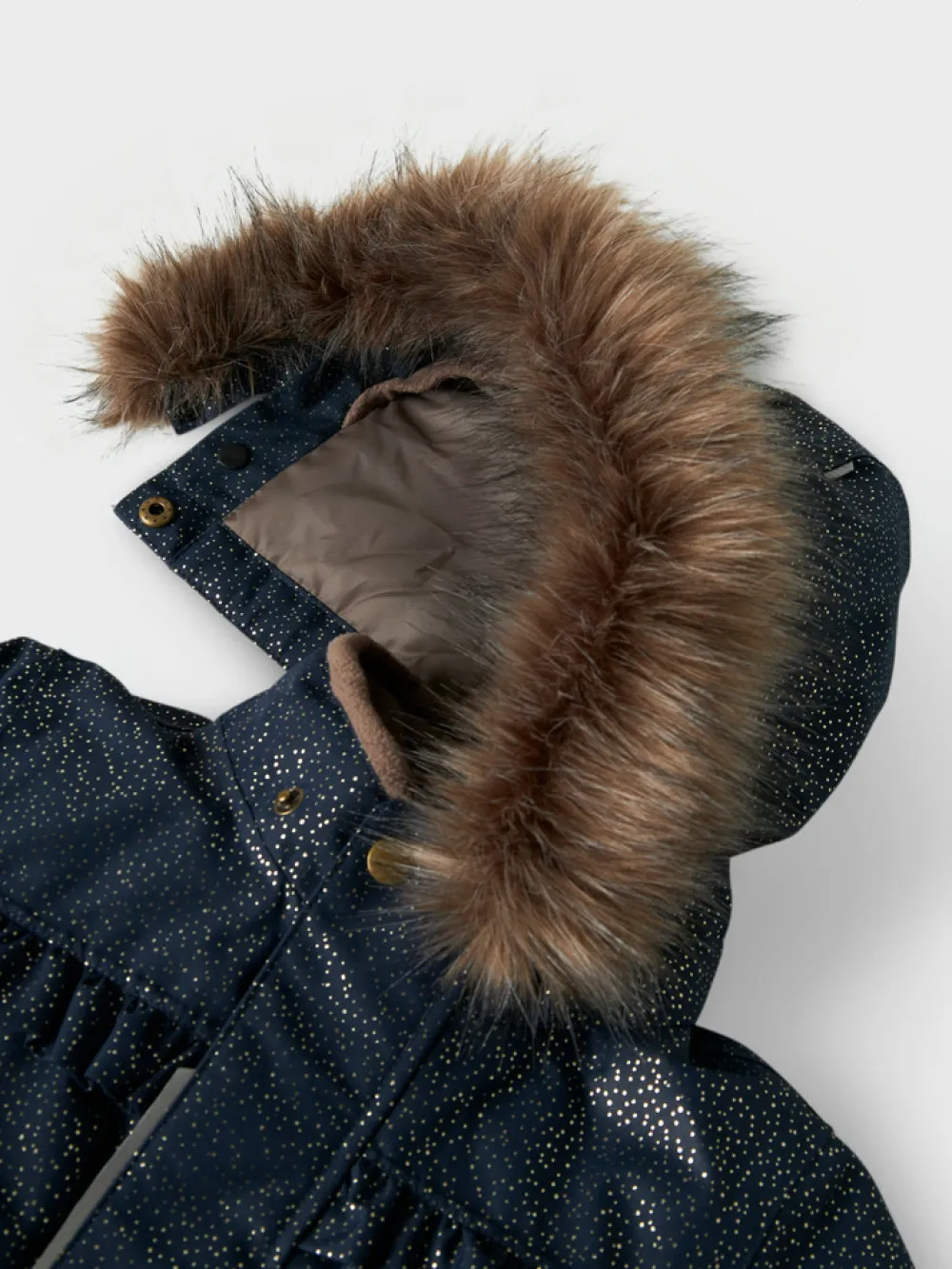 – Ekstra detaljer: Dekorative reflekterende detaljer, aftagelig detalje i imiteret pels, aftagelig hætte for sikkerhed, elastisk talje, lynlåsbeskytter for at forhindre, at lynlåsen fanger i huden, isoleret sædeområde for at holde dit barn varmt, når det sidder udenfor
