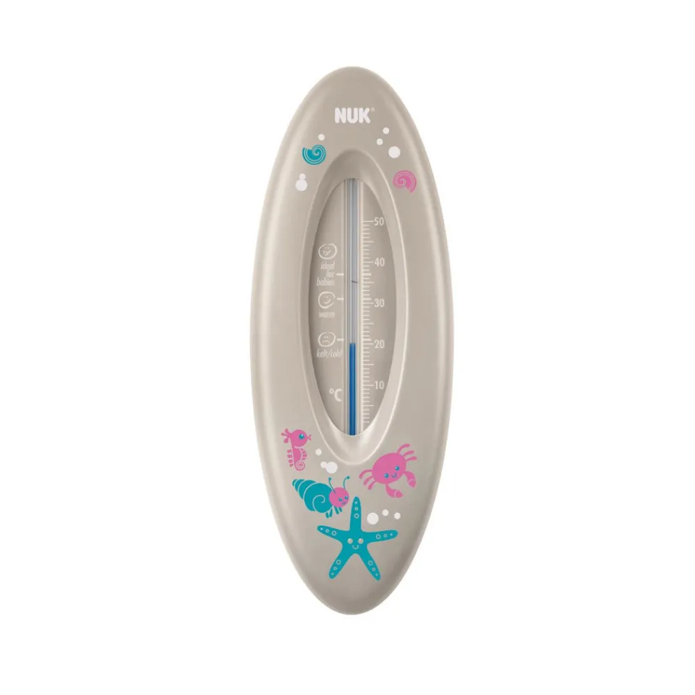NUK Bath Thermometer er en badetermometer som er ekstra sikkert da væsken i måleren er fremstillet af raps. Den er desuden gennemsigtig for lettere at kunne aflæses. Badetermometeret sikre at vandet holder den korrekte temperatur når barnet skal bade.