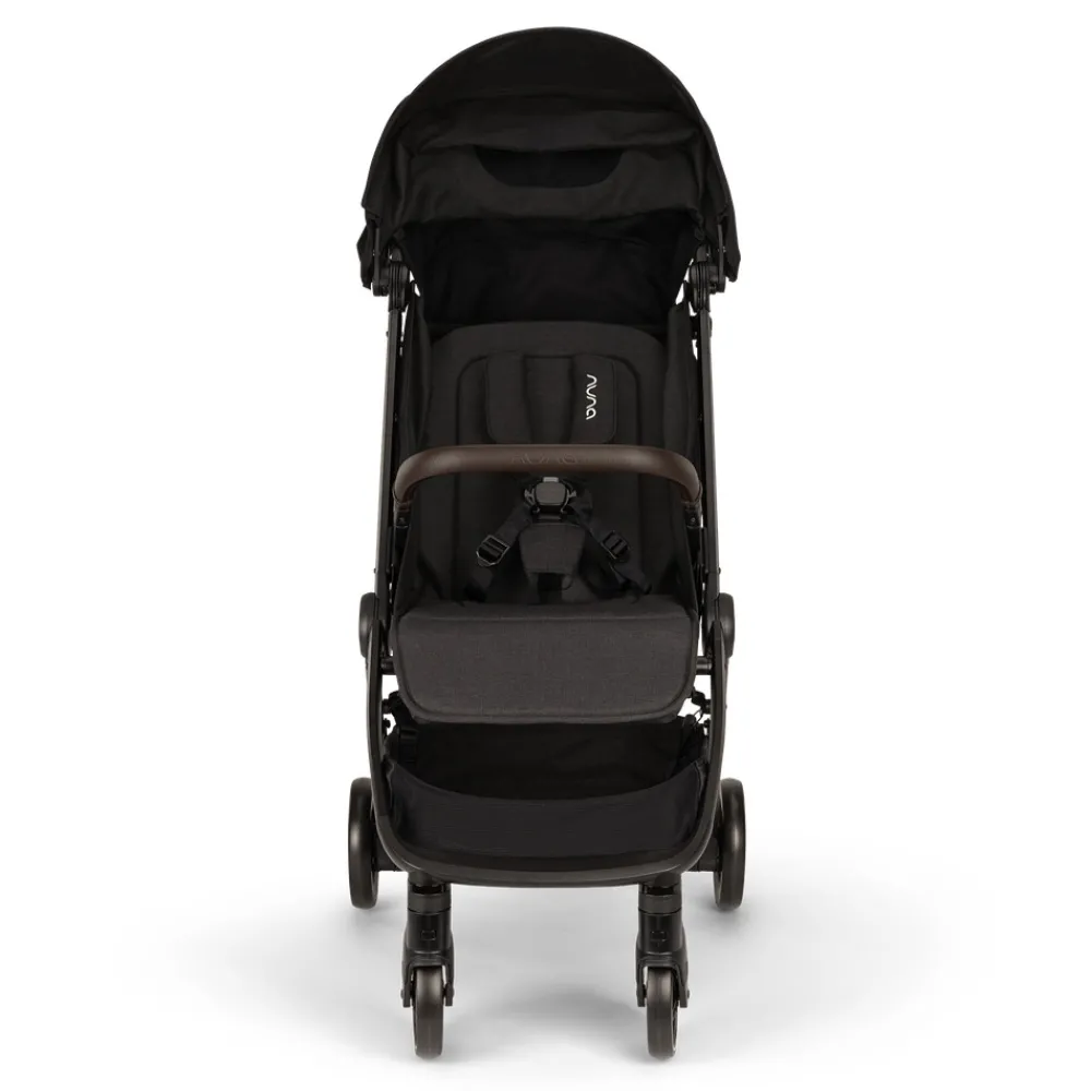 Luksus funktioner til by og rejser møder letvægts bekvemmelighed i denne fuldt udstyret og lækker designet klapvogn – TRVL fra Nuna. Sædet er trods det smalle udsende rummeligt, og med god plads til barnet.