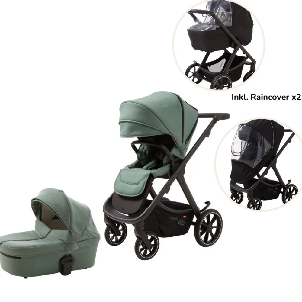 Lang kaleche som let klappes sammen med magneter.Lygte i kalechen, samt refleksbånd og stor ventilation.Lommer indvendigt i kalechen.Bærehåndtag – maks. 9 kg.Polstret så den passer til det nordiske klima.Lynlås i forlæderet.Let montering på stellet.Fidlock montering af forlæder.Madras medfølger.Madrassen har to forskellige sider – en sommer og vinter.Passer fra nyfødt til ca. 6 mdr. – liggemål 76 cm.