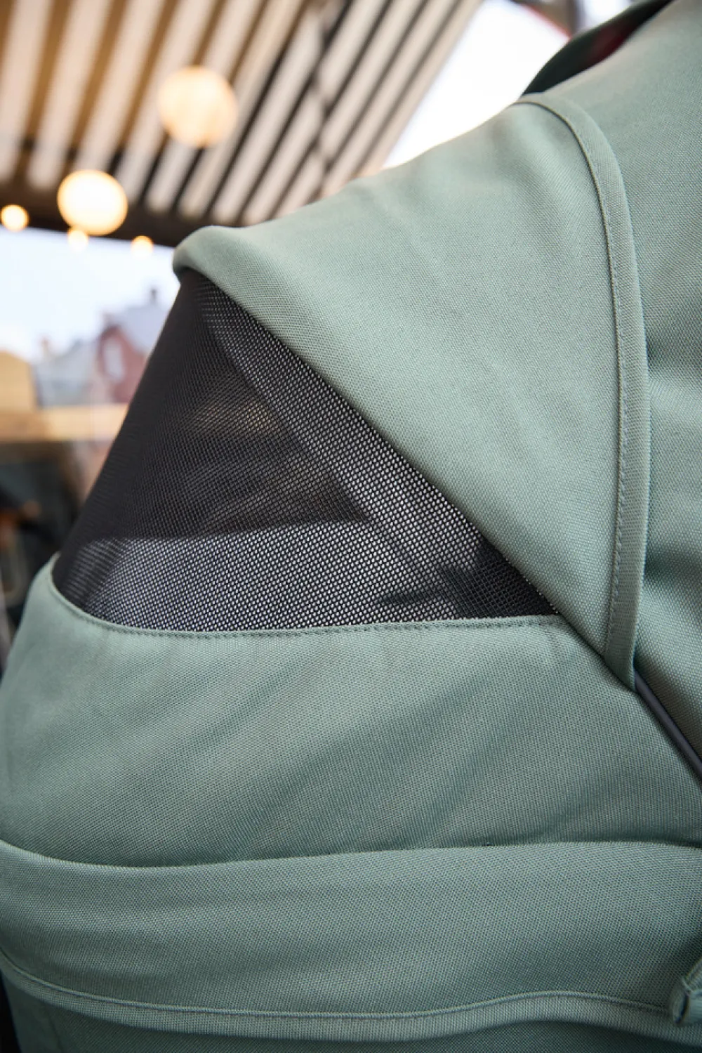 Odder Evoe liggedelen er en miniudgave af de store Odder barnevogne, og rummer alle de velkendte detaljer – fra integreret lygte og smarte udluftningsmuligheder i kalechen, til praktiske lommer både i kalechen og foran på liggedelen.