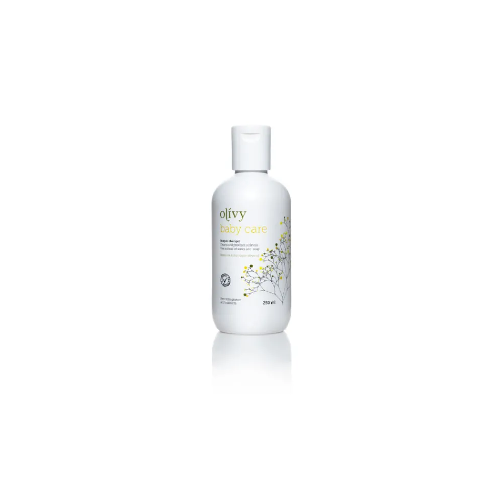 Vil du passe særligt godt på din babys hud og forebygge rød babynumse, skal du bruge Olívy baby care – diaper change, hver gang du skifter ble. Her får du blid rens, pleje og beskyttelse i én flaske. Olívy er allergimærket, baseret på 99 % naturlige ingredienser og uden parfume og farvestoffer. Et sundt alternativ til vand og sæbe. Fremstillet af ekstra jomfru olivenolie og en mild kalkopløsning, son du kan bruge med god samvittighed – fra barnet er nyfødt.