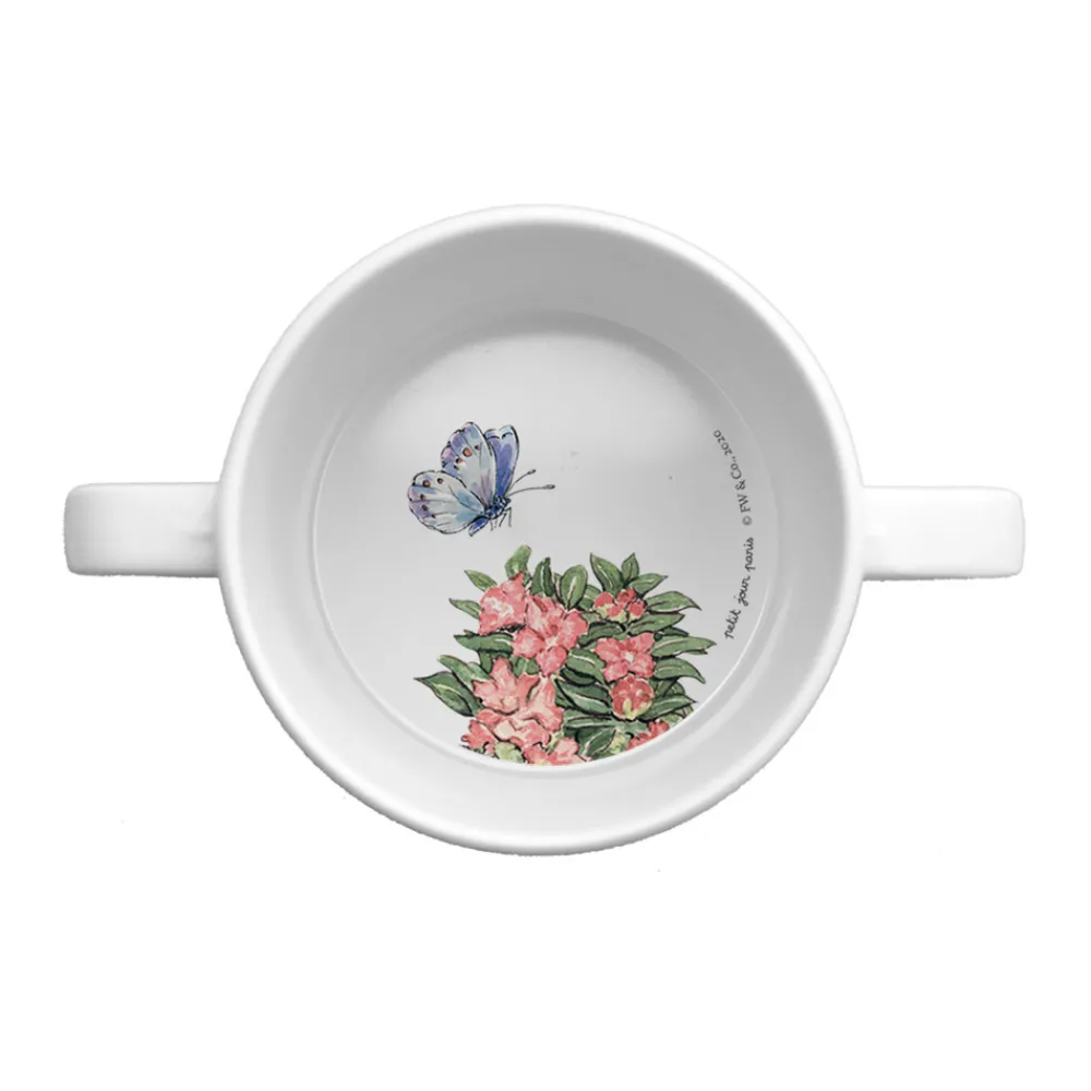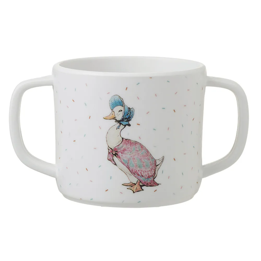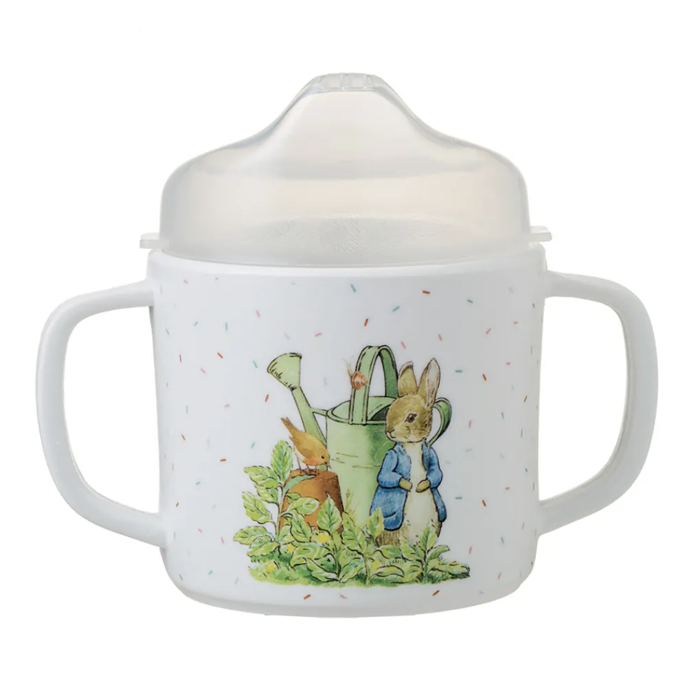 Når barnet selv vil til at drikke og holde koppen, kan denne tudkop være en god hjælp, til at undgå alt for meget spild. Med fine illustrationer med Peter Kanin.