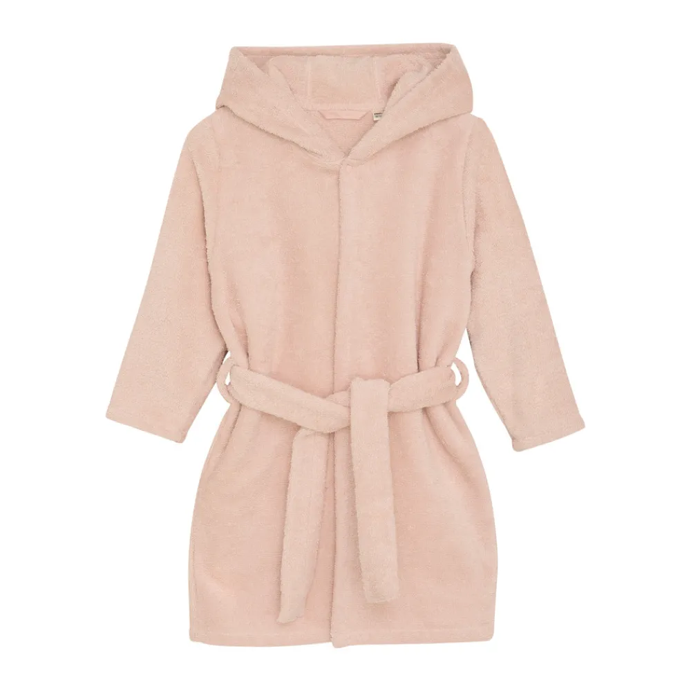 Denne badekåbe er designet specielt til børn og er lavet af blød frotté, der sikrer maksimal komfort og varme. Den er både praktisk og stilfuld med et bindebælte, der giver en justerbar pasform, så den sidder perfekt hver gang. Ideel til brug efter badet eller som en hyggelig morgenkåbe.