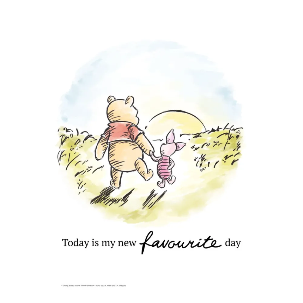 Denne plakat med Peter Plys og Grisling, der går hånd i hånd mod solnedgangen, spreder varme og glæde i ethvert rum. Det smukke motiv og det inspirerende citat minder om venskabets betydning og at værdsætte nuet. Plakaten er trykt på kvalitetsmateriale, så farverne fremstår klare og motiverne tydelige. Den passer perfekt til børneværelset, men kan også pynte i stuen eller som en sød gave til en du holder af. Med sit tidløse design og positive budskab skaber den en hyggelig stemning og bringer smilet frem hos både børn og voksne.