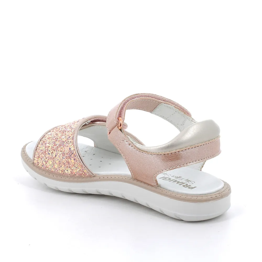 Sandaler med et bredt glitterbånd foran for et skinnende udseende. Velcrojusteringen sikrer en perfekt pasform til foden. Bagpolstringen beskytter anklen mod gnidning. Læderforingen og indersålen giver god hygiejne og åndbarhed. Den tynde, lette sål er yderst fleksibel.